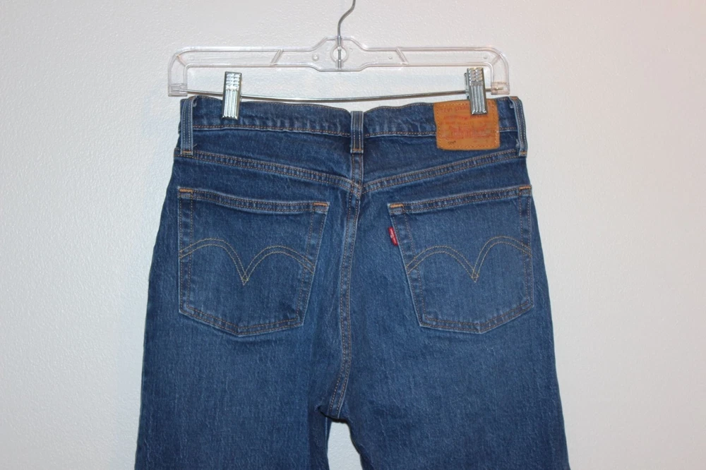 Crafted with a high-waisted fit, these Levi's jeans feature a button-fly closure and distressed hems. Designed for a stylish, modern look. • High-waisted fit • Button-fly closure • Distressed hem design • Classic five-pocket style • Blue denim material Size : 27 x26 Great Preowned Conditions, No Flaws.