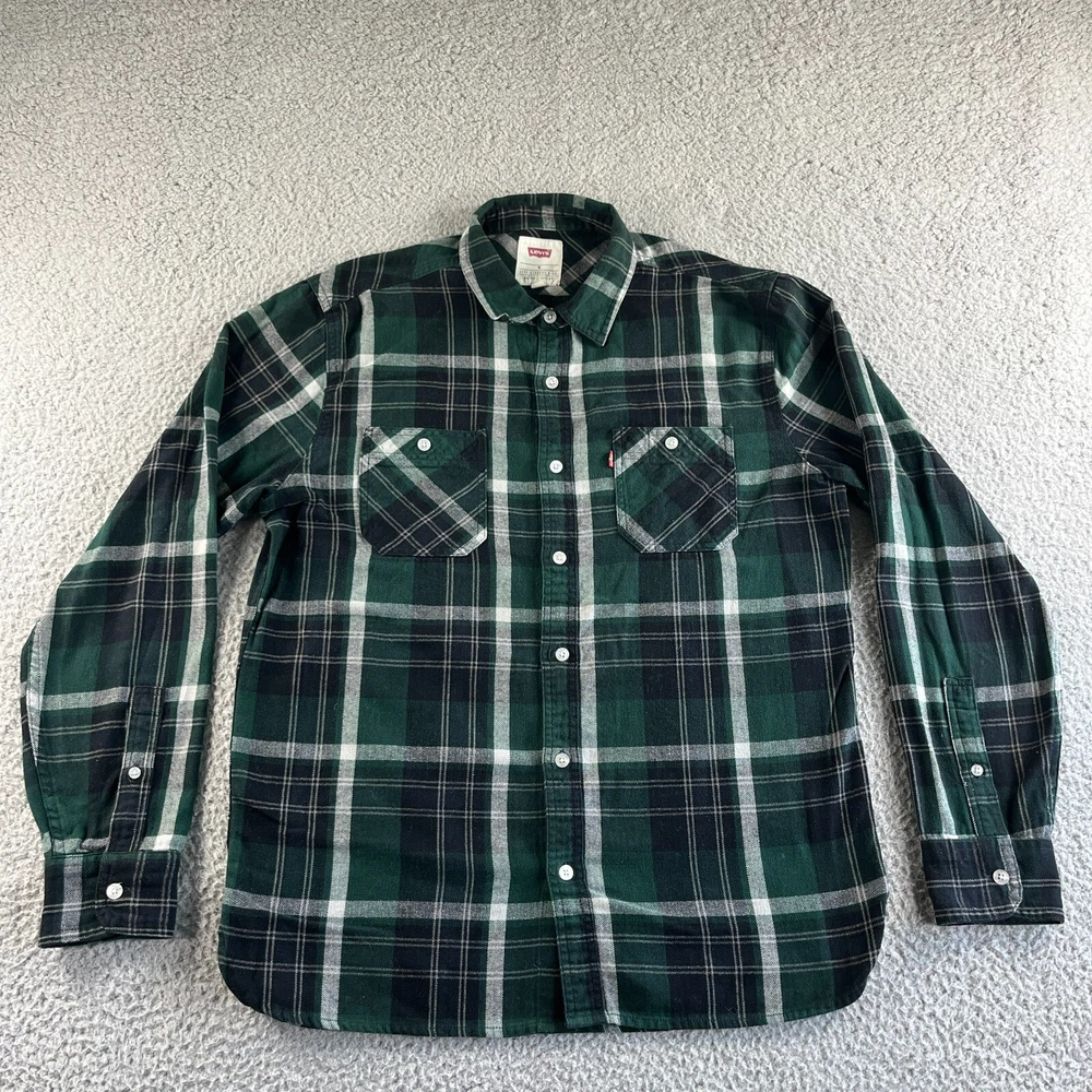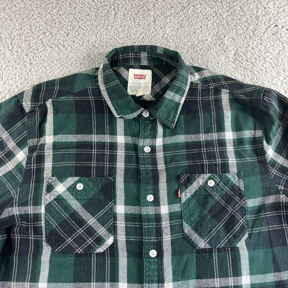 Levi's Shirt Mens Medium Green White Plaid Flannel Button Up Outdoors Casual Condition: Pre-owned. Good Condition. Please see all photos for condition and measurements. Please let us know if you have any questions. Thanks for shopping with us.