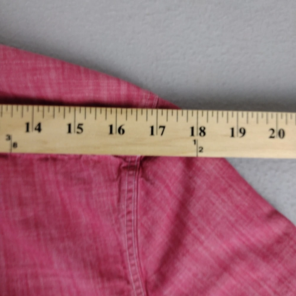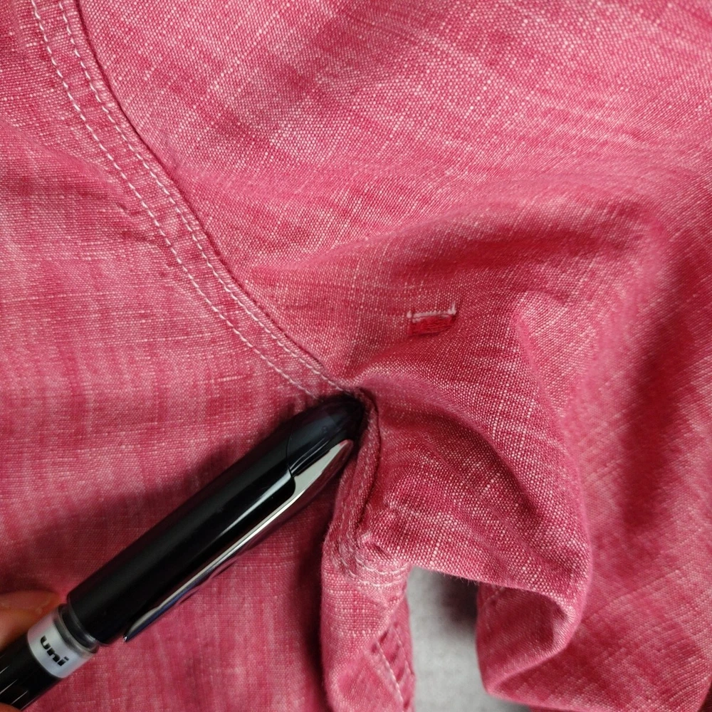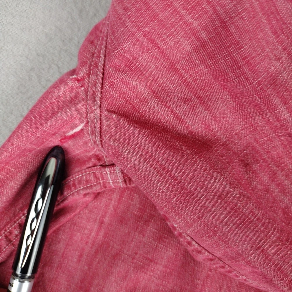 There are small holes in both of the armpits, otherwise good condition, see photos Chest(Pit to Pit): 18 Shoulder to Shoulder: 17 Neckline to Bottom: 26 Sleeve (Shoulder to end of sleeve): 23 See photos for condition details and measurements if applicable. It is recommended to wash pre-owned clothes once before first wear. Item will be shipped within one day of purchase except for on weekends.