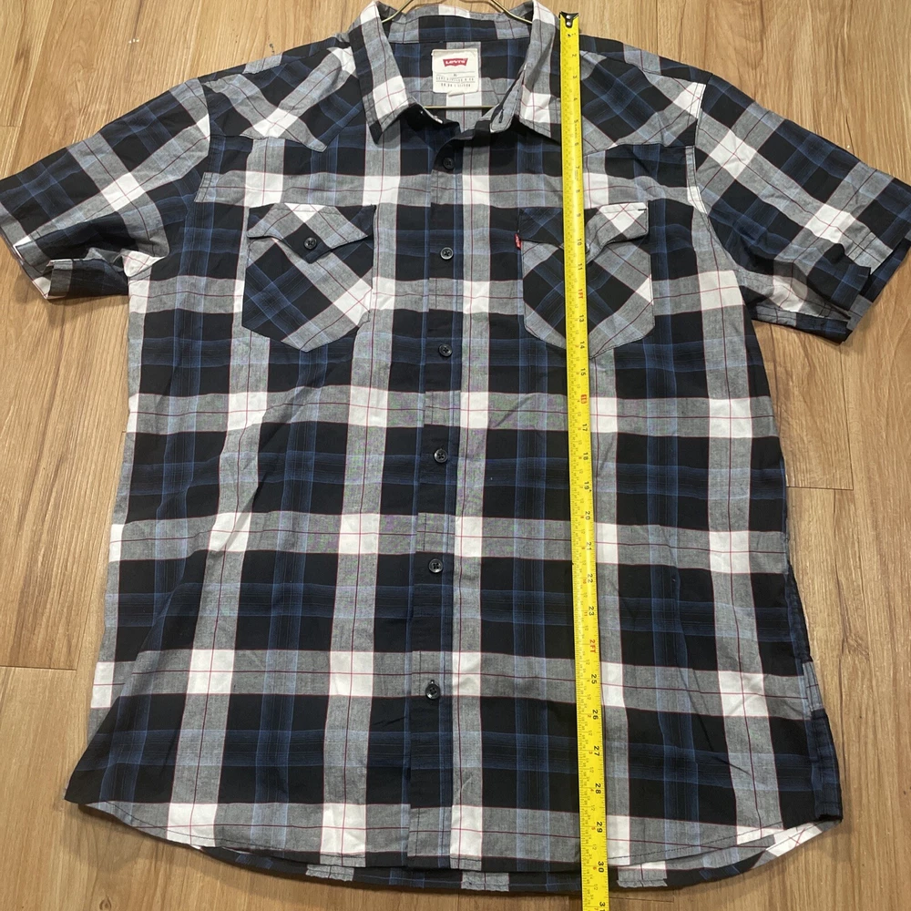 Levi's Shirt Mens XL Blue Plaid Button Up Western Short Sleeve