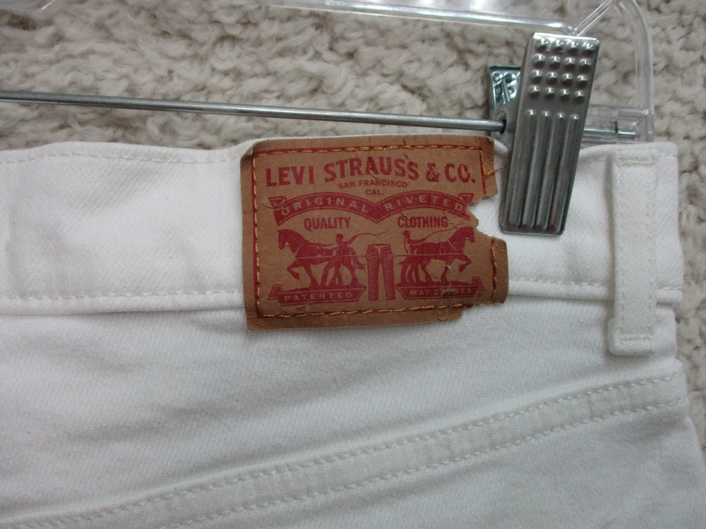 Occasion: Casual Suspender Buttons/Belt Loops: Belt Loops Inseam: 14 in Brand: Levi's Color: White Style: Chino Country/Region of Manufacture: Mexico Rise: Mid (10-12 in) UPC: Does not apply Material: Cotton, Cotton Blend Season: Fall, Spring, Summer, Winter Size Type: Regular Pocket Type: Slash Pocket Features: Easy Care, Pockets Theme: Logo, Modern, Outdoor Garment Care: Machine Washable Seller Notes: “Very Good Used Condition. Please, See Pictures for Full Condition and Measurements.” gtin13: Does not apply Size: 26 Accents: Button, Logo Waist Size: 26 in Pattern: Solid Fit: Regular Department: Men Closure: Zip Front Type: Flat Front
