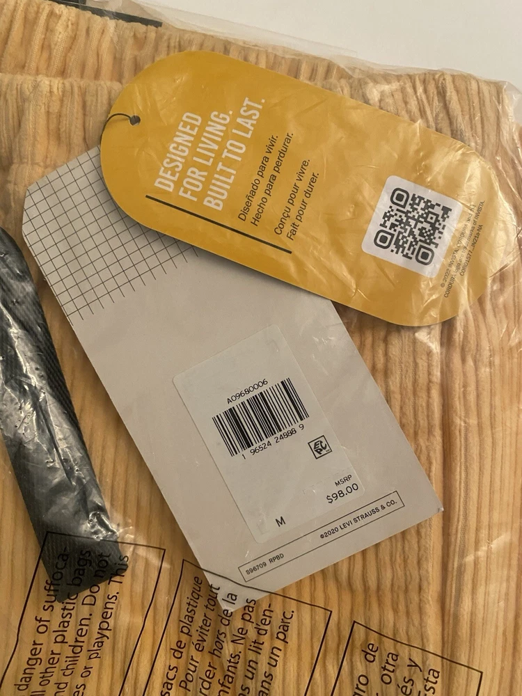 Levis Size Large Apricot Cream Skateboarding Quick Release Corduroy Pants - M