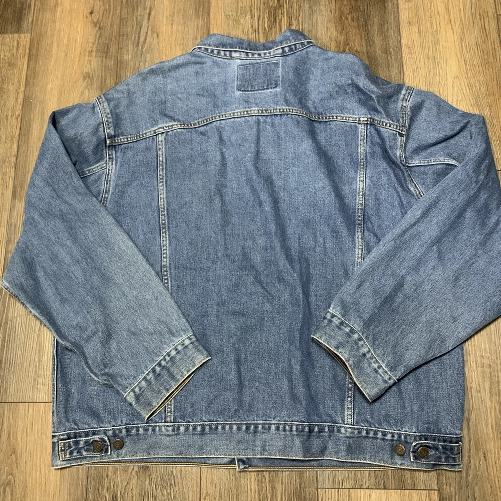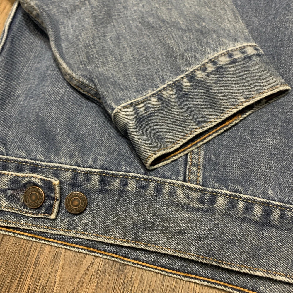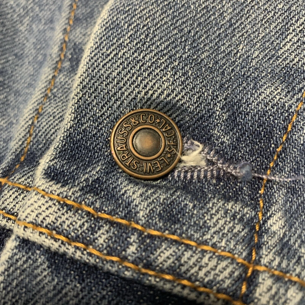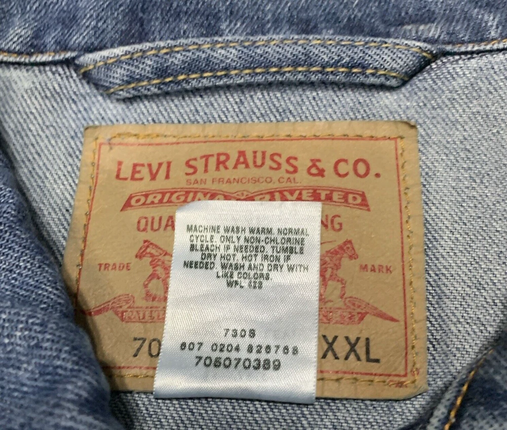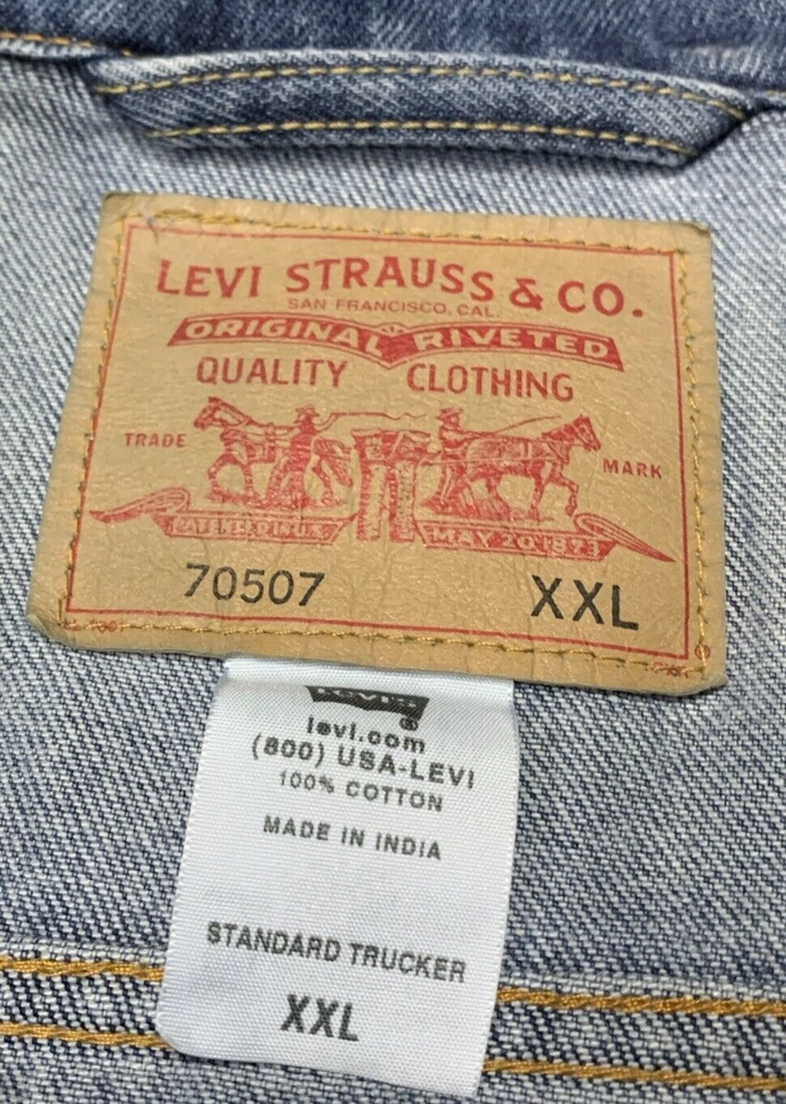 Get ready to hit the road in style with this Levi's Standard Trucker Blue Jean Jacket. Made with high-quality denim fabric and lined with soft cotton, this mid-length jacket is perfect for any occasion, whether it's a casual day out or a business meeting. The jacket features a spread collar, button closure, and Levi's logo accents. This classic fit jacket is available in size 2XL and is machine washable for easy care. The vintage-inspired design of this jacket is perfect for anyone looking to add a touch of Western, Biker, or Cowboy style to their wardrobe. Whether you're a fan of outdoor activities or just looking for a stylish and comfortable jacket, this Levi's Trucker is the perfect choice.