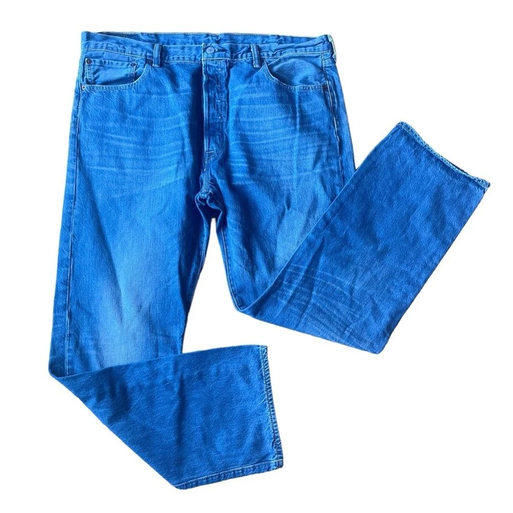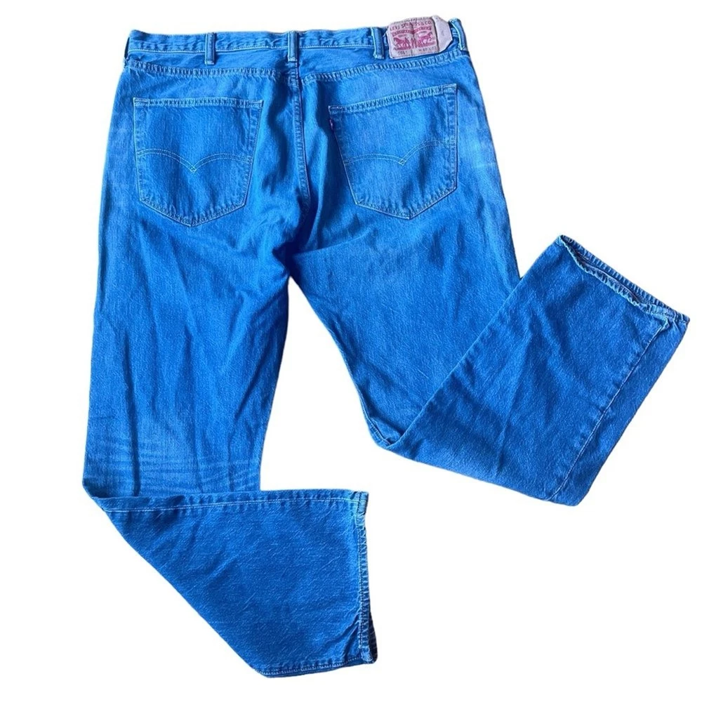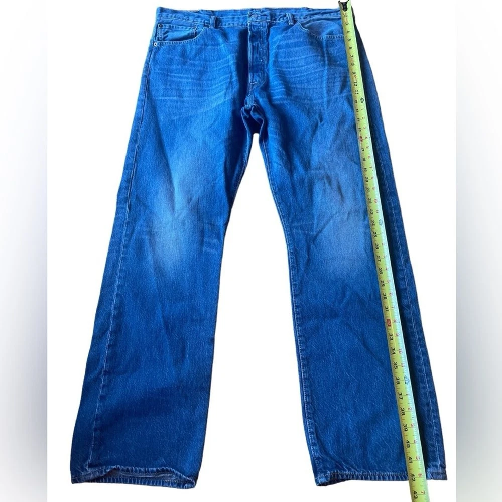 Levis Straight Leg Jeans Mens Size 40 32 inch inseam Excellent condition Some wear to the back label but denim is in excellent condition Button up enclosure Front and back pockets See photos for flat lay Measurements