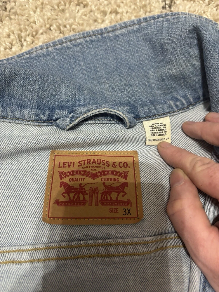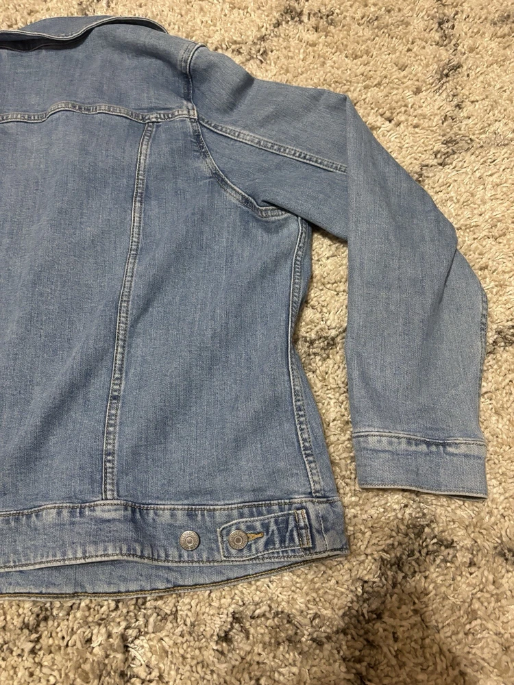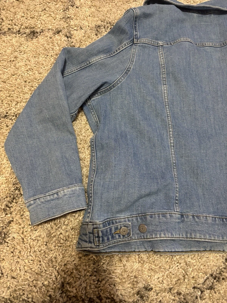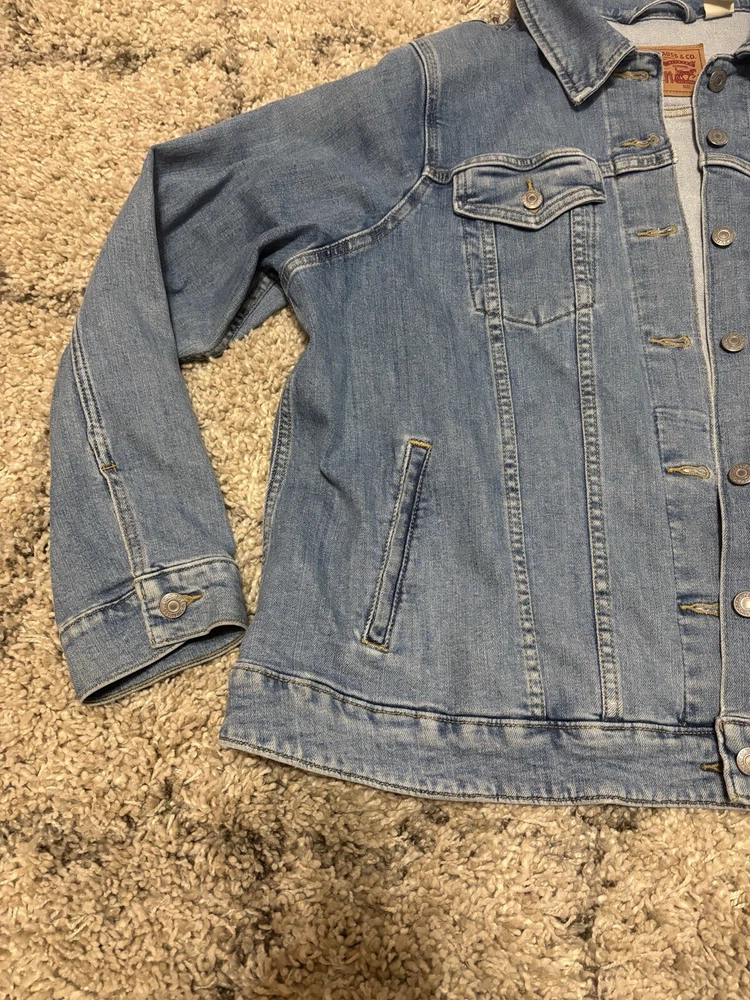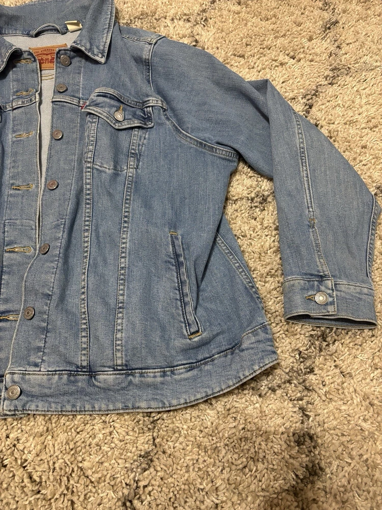 Elevate your denim game with this Levi's Strauss Co blue jean button-up denim jacket for women. This classic 90s style jacket features a collared neckline, button closure, and pockets for added convenience. The jacket is made of high-quality cotton denim material and comes in a size 3XL, making it a perfect fit for regular size types. This jacket is a must-have for any woman's wardrobe and can be paired with any outfit for a stylish look. Visit my eBay store for more new and lightly used clothing, collectibles, and other items.