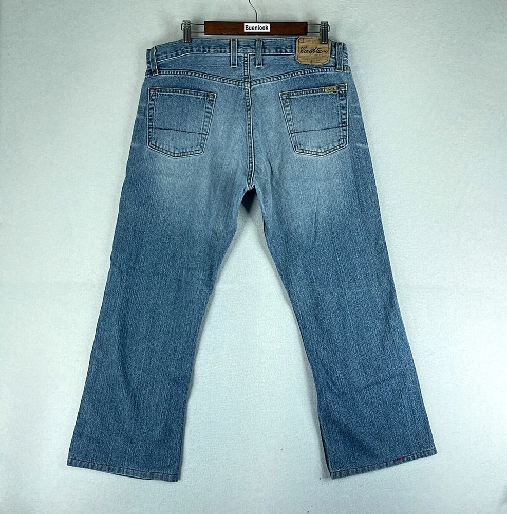 Levi's Strauss Mens Jeans Blue Tag Size 36 (36x27.5) Low Slim Bootcut Denim -------> PLEASE NOTE: TAKE A SPECIAL LOOK AT THE WHITE ARROWS ON THE PHOTO SECTION SHOWING THE FLAWS<------- -------> PLEASE NOTE: THE ORIGINAL INSEAM LENGTH HAS BEEN MODIFIED <------- Made in: Mexico TRUE SIZE * The measurements we made with a ruler of THE ACTUAL SIZE OF THE PANTS are on photos.* Genre: Male Condition: Pre-Owned Some things to consider: * All our items are inspected several times before we ship to you. If there is an issue, you will find it photographed and described in the condition overview . Please review this very closely to ensure that this item is exactly what you are looking for. * All items are cleaned and stored in a pet-free / smoke-free environment. * Please take a special look to all the measurements we took using a ruler and also the measurements that comes in the item tag for an accurate fit. This saves you the headache of returning an Item that does not fit. we offer 30 day free returns on unused/unworn items. Please compare our measurement photos to your favorite garments to ensure fit. Note, item measurements are approximate and in the photos. Feel free to ask any question about this item. "We ship as soon as possible after the payment has been made"