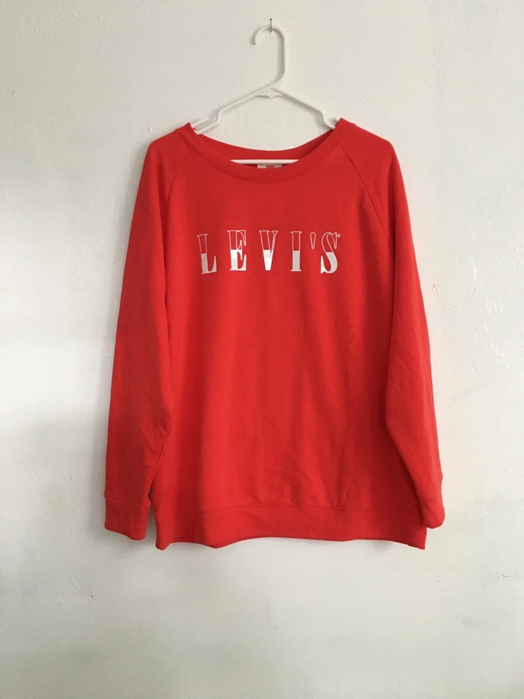 Levi's Sweatshirt Pullover Logo Knit Red Basic Plus Size Long Sleeves see pictures for more details all Pictures are size 2X Measurements 3X shoulder to hem 29 inches sleeve length 29 inches pit to pit 27 inches