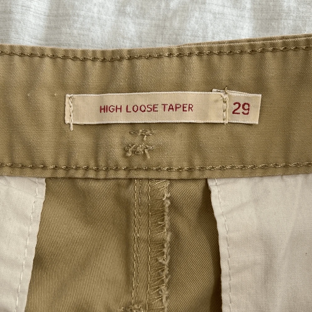 Totally timeless in a forever classic design, these essential pants from Levi’s are featured in a high-rise, tapered silhouette with exaggerated pleating at top and defined waist with belt loops. - Fabric: No stretch Twill: 60% Cotton, 40% Polyester - Size and Fit: Loose through your hip and thigh; super high rise Condition: Excellent used. No flaws. Belt is NOT attached as in stock photos. Belt is ugly/cheap looking IMO. Size: 29 Rise: 13.5” Inseam: 29.5” approximate