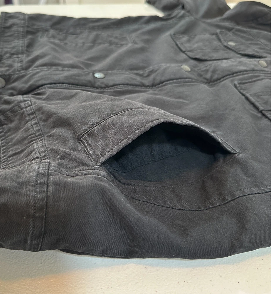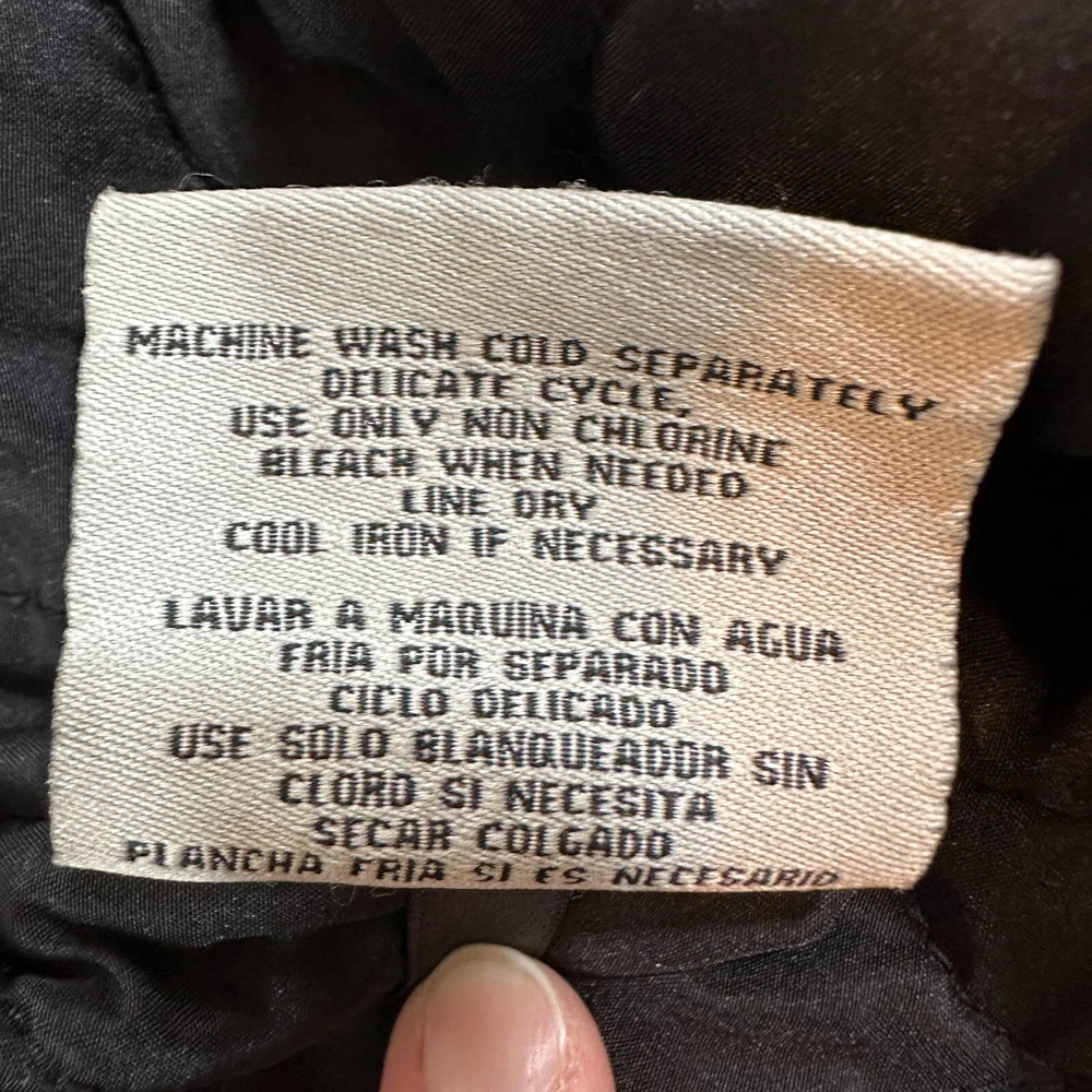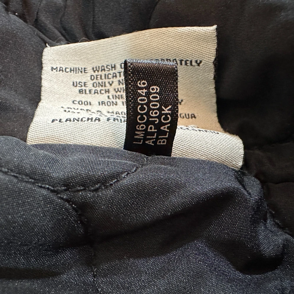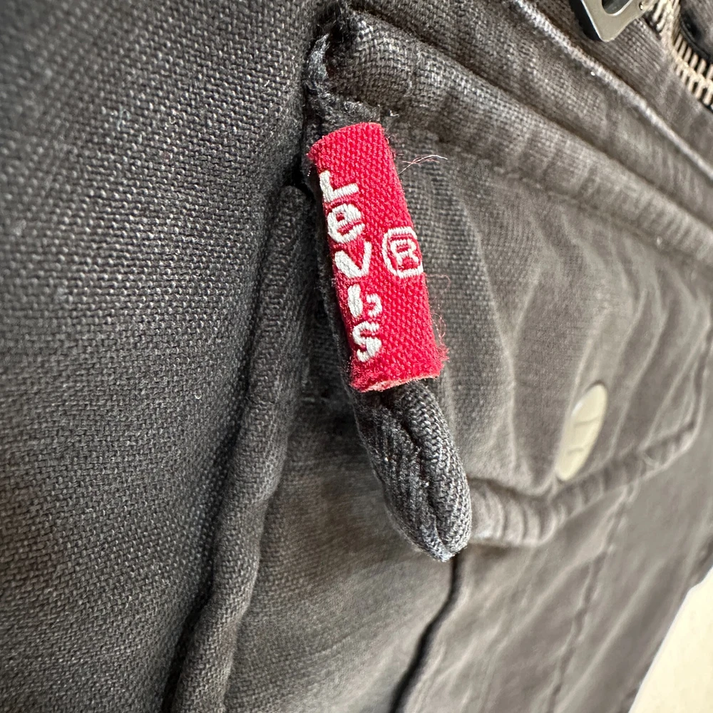 Levi's Trucker Jacket 5 Pocket Black Chore Barn Coat Fall Christmas Men's Size Large Approximate Measurements (inches): Length: 27" Pit to Pit: 24" Sleeve: 26" Shoulder: 18.5" Cuff: 4.75" - 5.5" 100% Cotton shell 100% Polyester lining & filler Machine Washable This jacket is medium to heavy weight, weighing ~2 lbs 8oz itself. Features: - 5 outer pockets; 1 zippered chest pocket, 2 snap closure chest pockets & 2 slip side pockets. - 1 interior chest pocket, left side. - Full zip closure w/ additional snap closure. - Quilted liner Pre-loved & in great condition! Some minimal wear on surface of zipper pull. See photos for close ups & measurements. Freshly laundered & ready to ship!