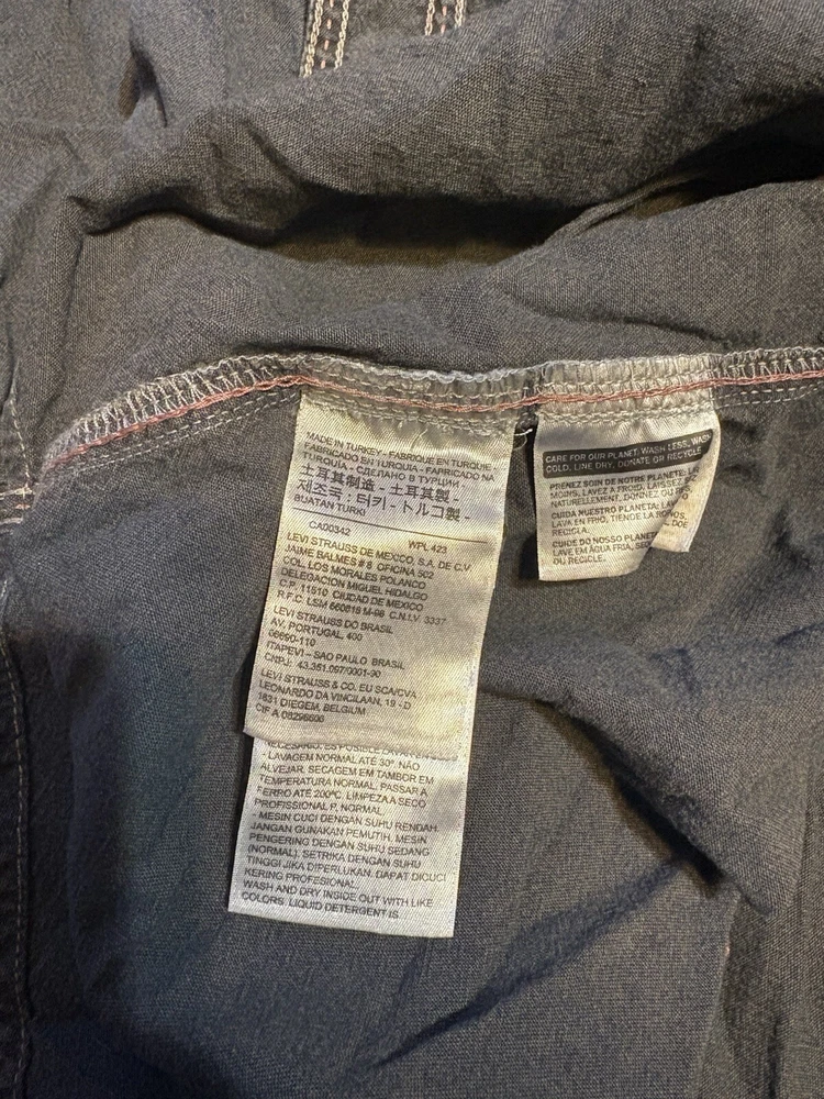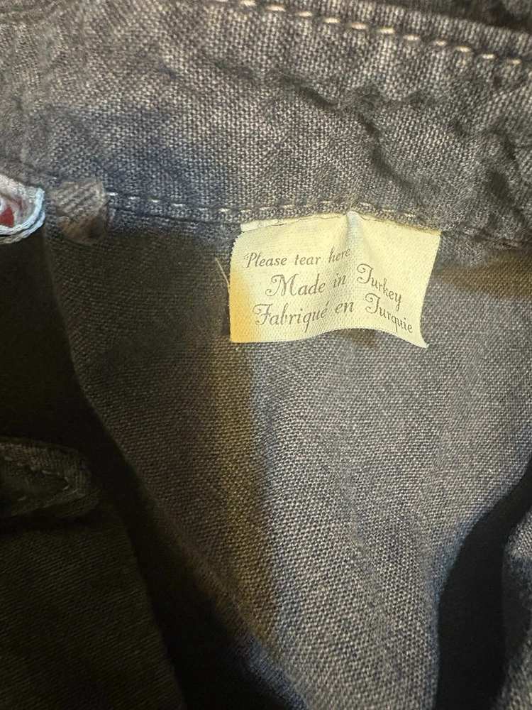 Levis Vintage Clothing LVC Strictly Rockers Chambray Shirt XL Embroidered Floral Patches. Shirt has a nice pre-washed fade to it.