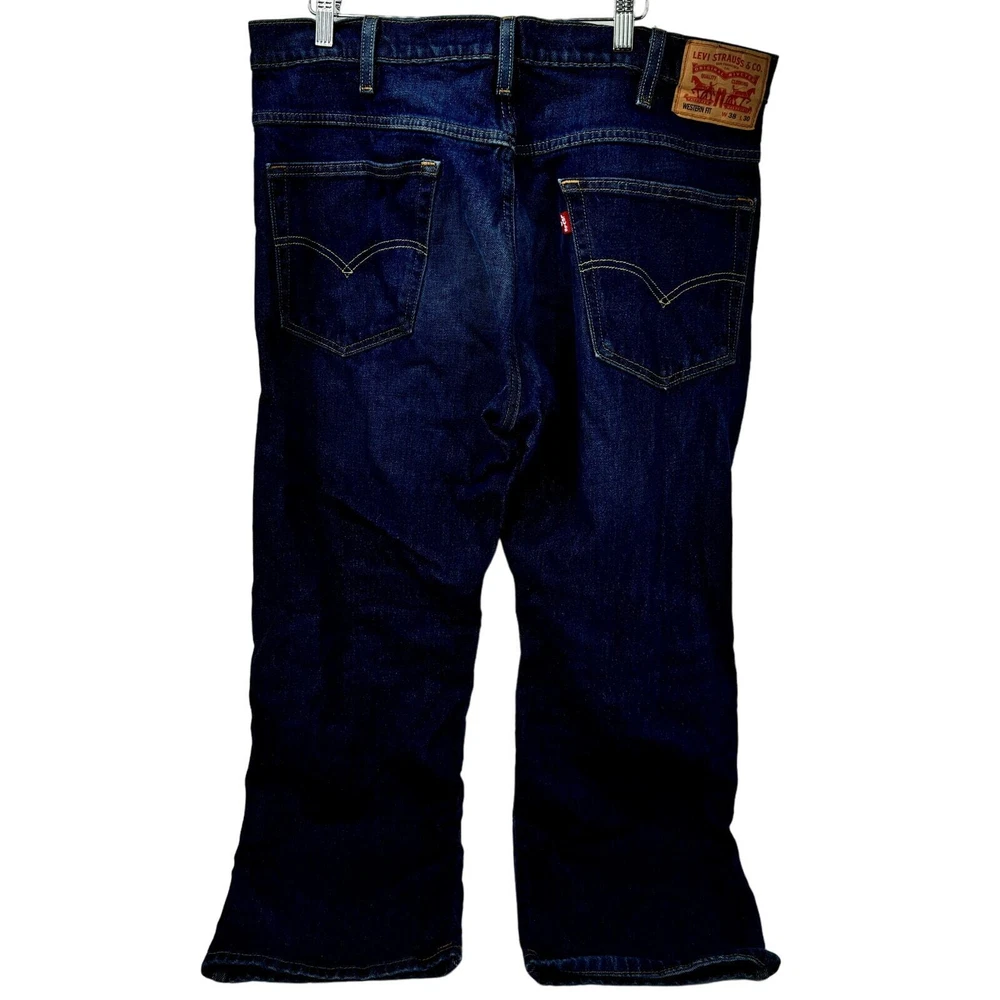 Levi's Western Fit Jeans Mens 38x30 Straight Leg Blue Denim Dark Wash Very good condition, see all pictures for views. •Waist: 38" •Inseam: 29" •Rise: 12" Thank you for your purchase!