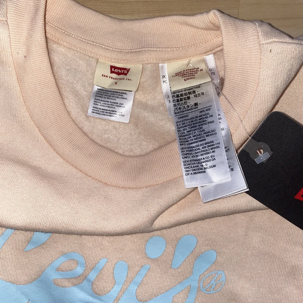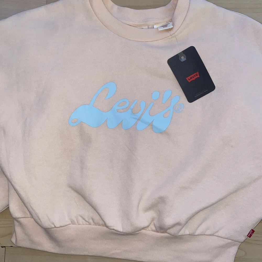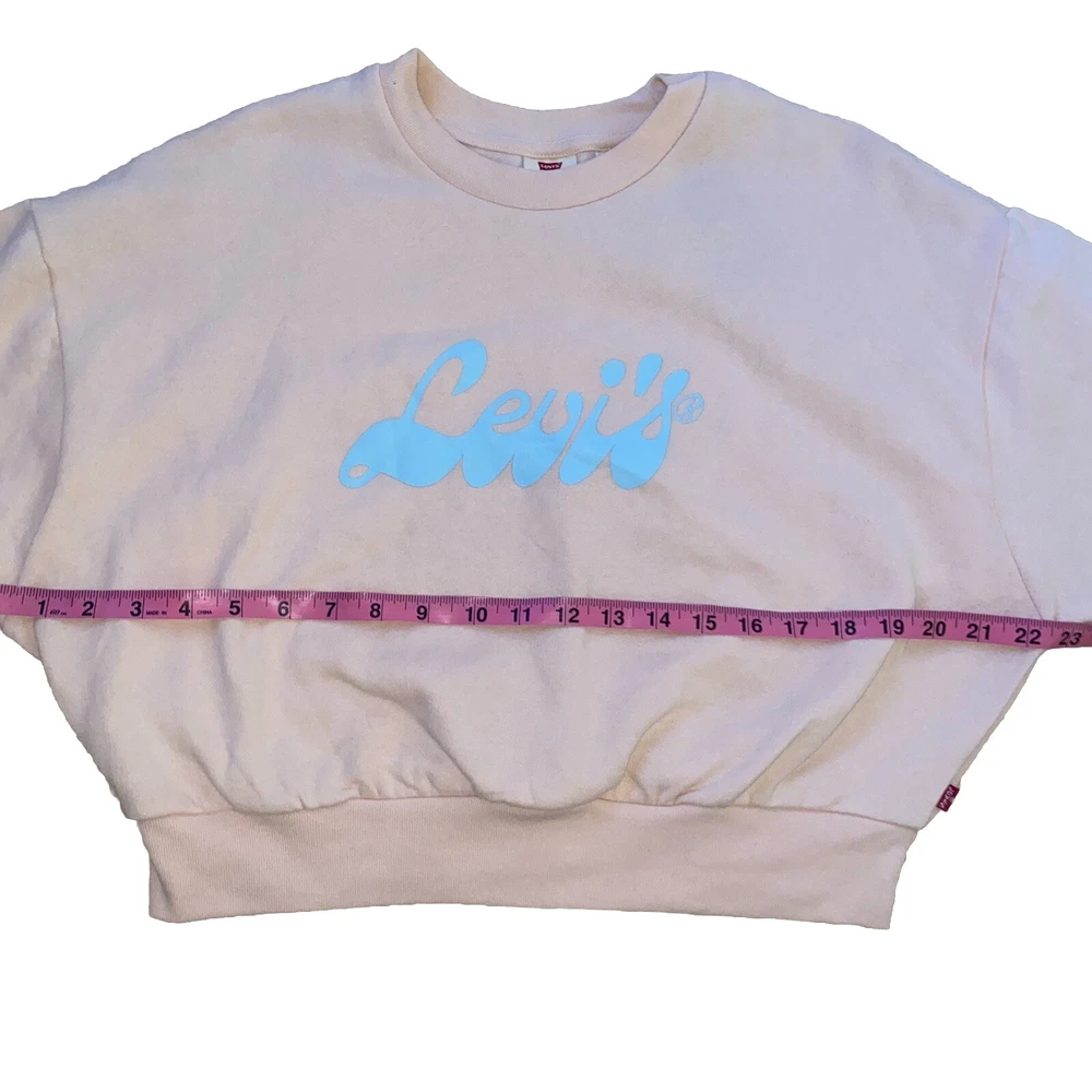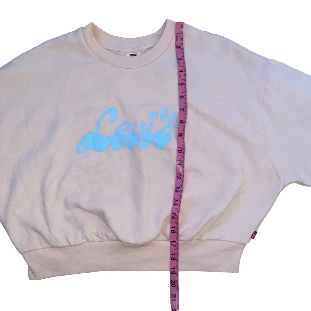 Levi's® Women Small Cropped Graphic Logo Sweatshirt Script Peach Puree New with Tags $54.50 msrp Material: 60% Cotton 40% Polyester Approximate Measurements: Pit to Pit: 22.5’’ Length: 19’’ New with Tags. Next businesses day shipping!