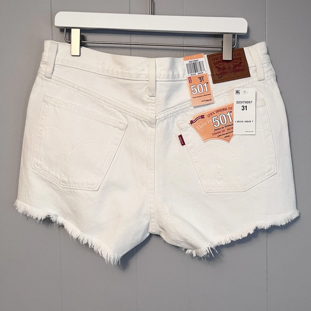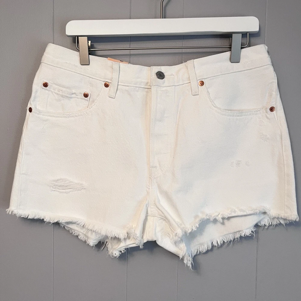 Levi’s Women’s 501 High Rise White Denim Shorts Button Fly Size 31 NWT