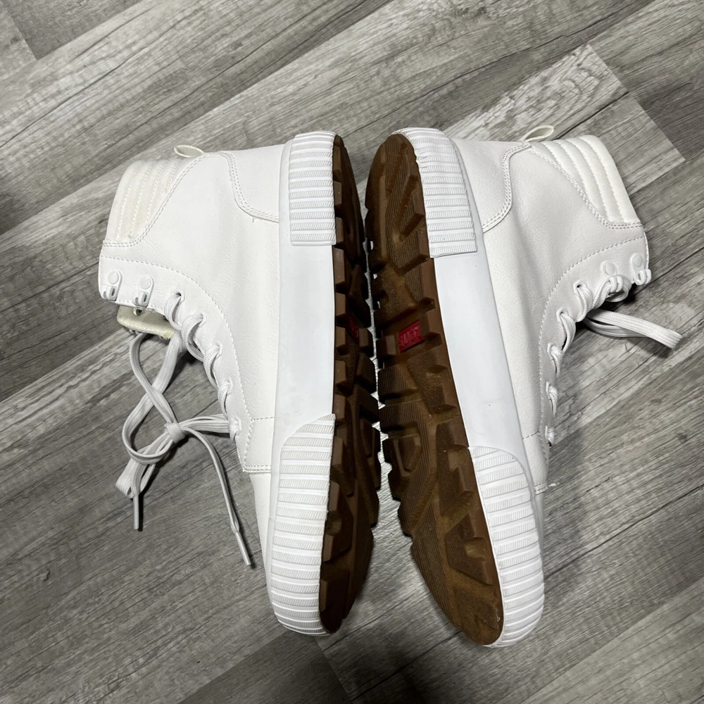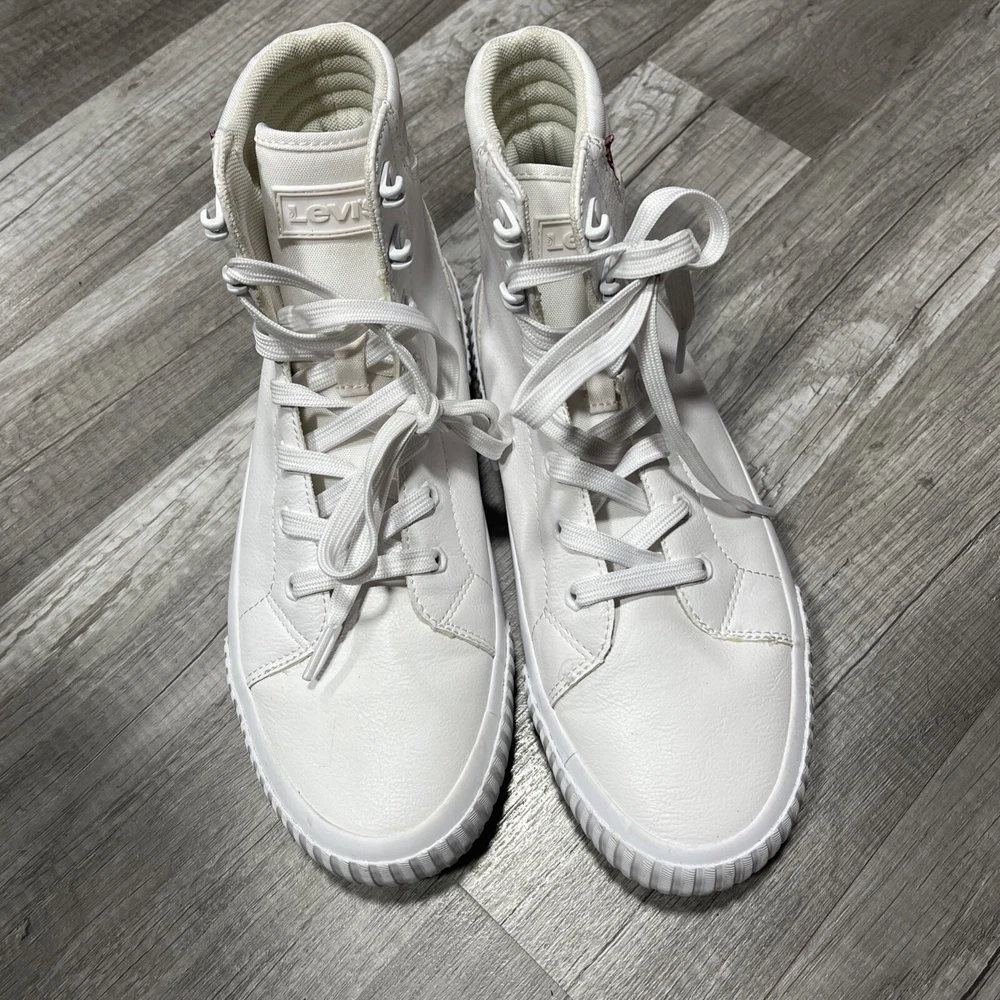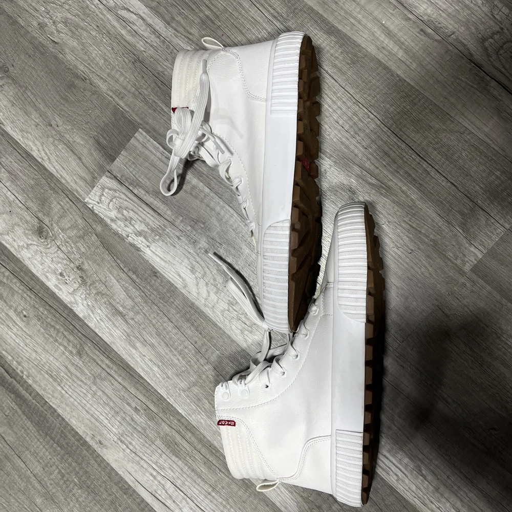 Step into stylish comfort with the Levi's Women's Olivia CVS Canvas Hightop Fashion Sneakers. These chic white mono sneakers, in a size 8.5 medium width, blend fashion-forward design with the practicality needed for everyday wear. The durable canvas upper material ensures longevity while the rubber sole provides excellent traction. Lace-up these unisex adult athletic shoes for a secure fit that's perfect for any casual outing. Crafted with attention to detail, they reflect the iconic Levi's brand's commitment to quality and style. Whether you're running errands or meeting friends, these sneakers are a versatile addition to your footwear collection.