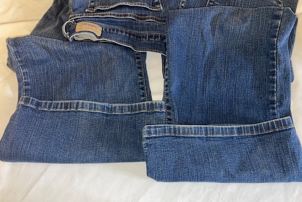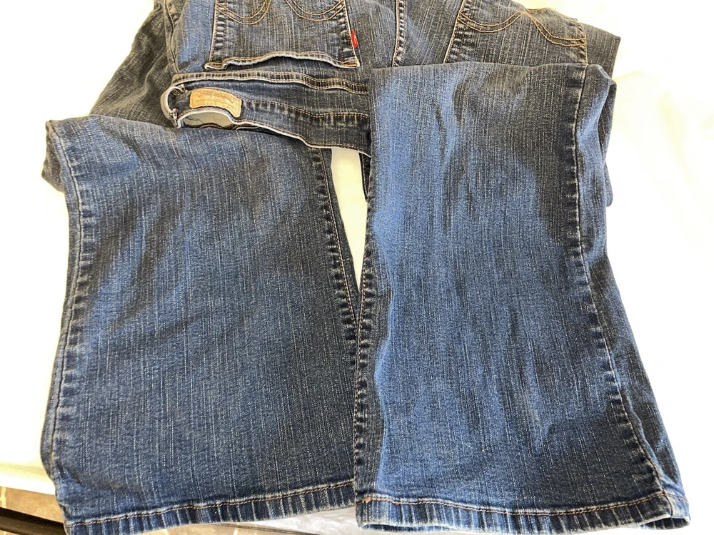 Levi jeans Perfectly slimming boot cut 512 jeans They are size 16M. The waist is 16 1/2 inches wide, the legs inside seam are about 30 inches long and the leg seam at bottom is 10 inches wide. They seem to be pretty stretchy. Please see pictures for condition and details. Thank you so much for looking! If you would like more pictures please let me know.