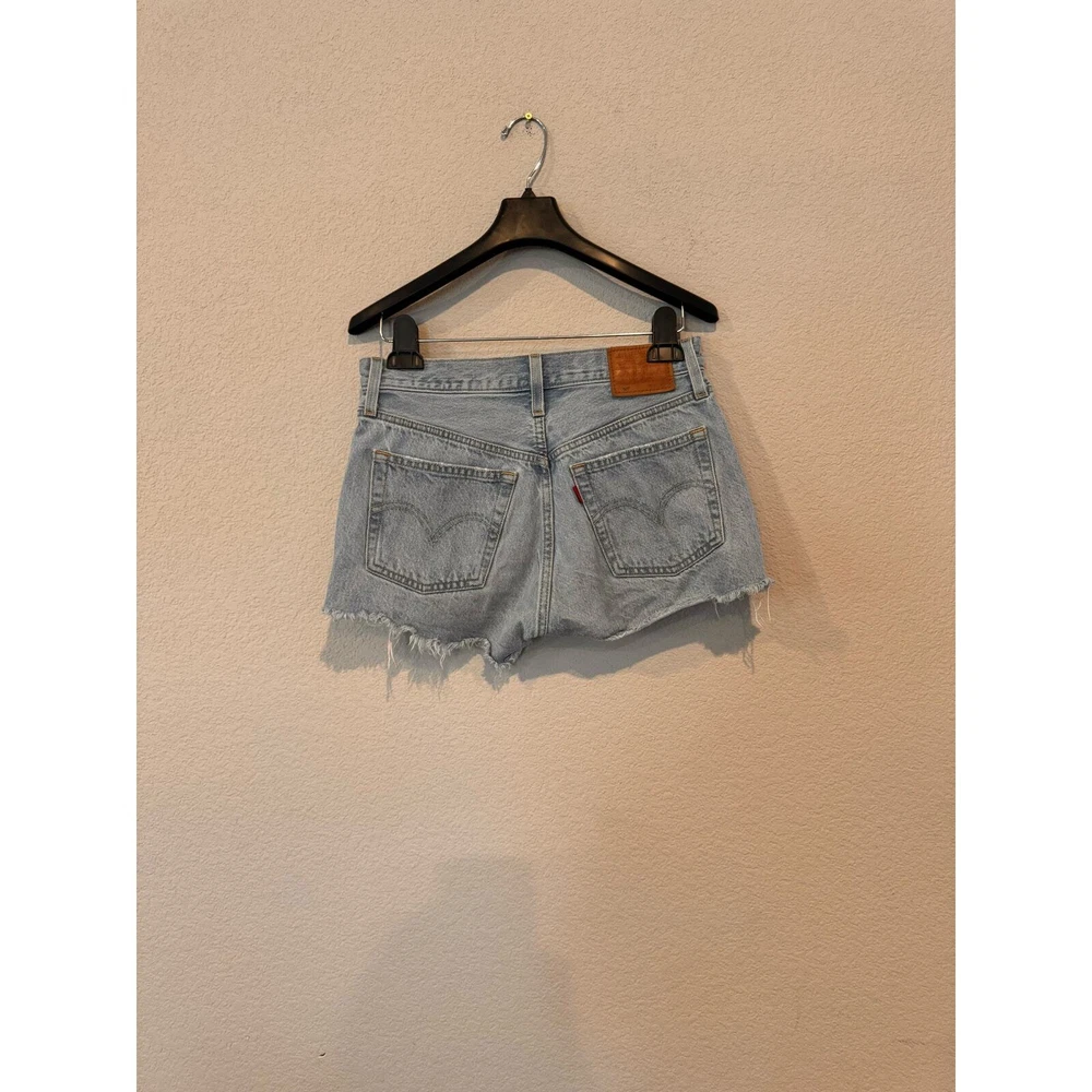 Embrace timeless style with these classic Levi's denim shorts. Crafted with authentic denim, these shorts feature a comfortable fit and iconic details like a button fly and five-pocket styling. The light wash and subtle distressing add a touch of vintage charm, making them perfect for casual outings and warm weather adventures. Whether you're heading to the beach, grabbing coffee with friends, or simply enjoying a relaxed day, these Levi's shorts are a versatile and stylish choice. Measurements: Waist 25" Condition: Overall in excellent used condition with no noticeable signs of wear. It has been kept in a smoke-free and pet-free home with no unpleasant smell. Enjoy fast shipping on all orders, and bundle more items to score huge discounts!