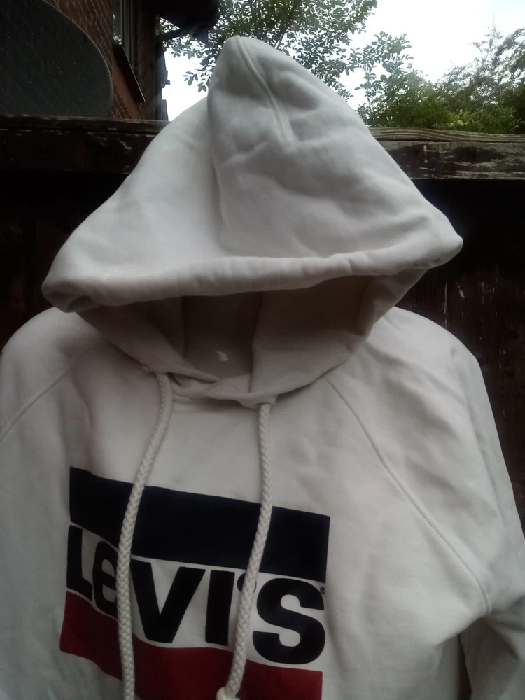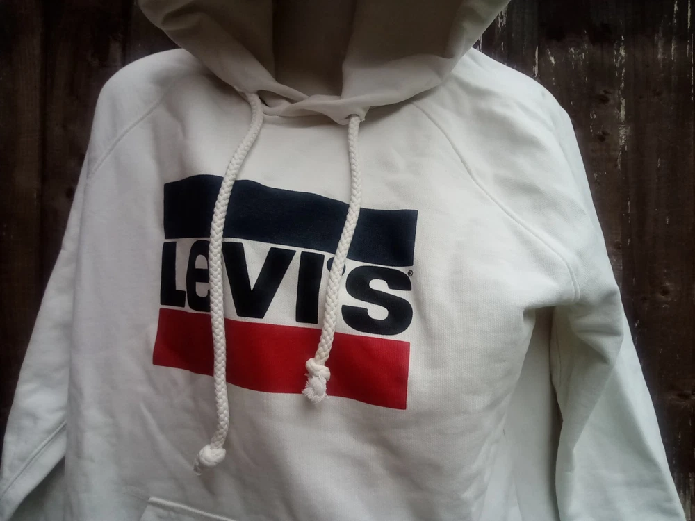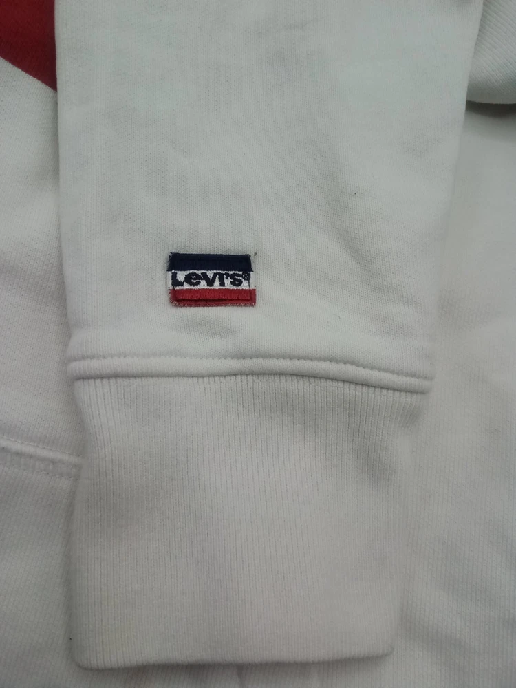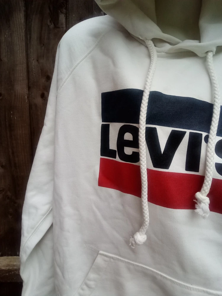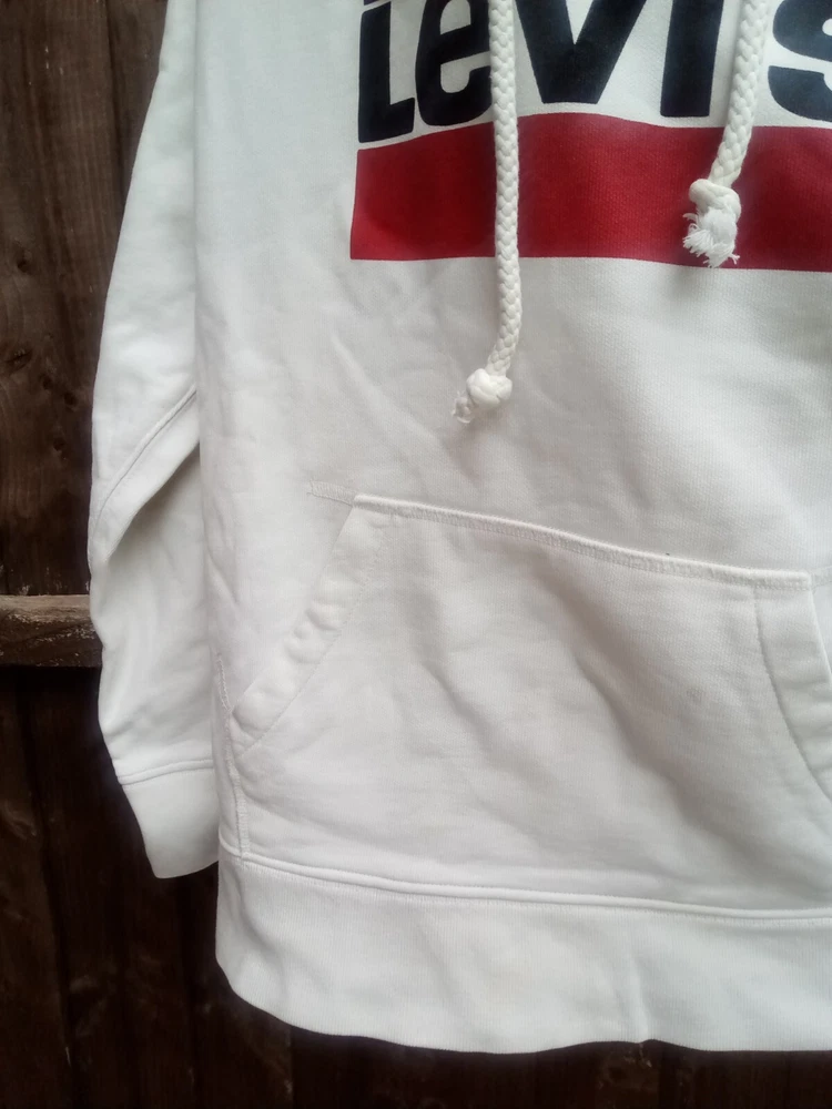 Levi's women's graphic print hoodie UK M White with logo to chest and sleeve Drawstring neckline Elastic cuffs Kangaroo pocket 21'' pit to pit 23'' from neck to bottom hem In very good used condition, light wear Has a few storage marks (will wash out)