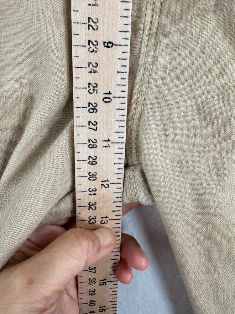 Fair condition some pilling and wear relaxed linen blend Flat lay: waist 19" Rise 11.5" Inseam 28" leg Opening 7.5" Material: 71% linen 29% Poly linen, coastal, beachy, relaxed, preppy, minimalist, sustainable, 90s, work wear, office, breathable, light weight PLEASE check all flat lay measurements and listings carefully BEFORE PURCHASE!I put in a lot of work into hand measuring and researching each items as best as I can! Thank you so much for your consideration! Please note that: RETURN SHIP FEE IS PAID BY THE BUYER! If you are not too familiar with flat lay measurements, I recommend taking a measurement of your own clothes that you feel comfortable and compare with the measurement I provide. For returns: The items MUST BE IN SAME CONDITION AS SOLD for full refund! We all don't like returns and let's work together to minimize! Please note that RETURNS ARE NOT ACCEPTED FOR NEW WITH TAG OR NEW WITHOUT TAG ITEMS!