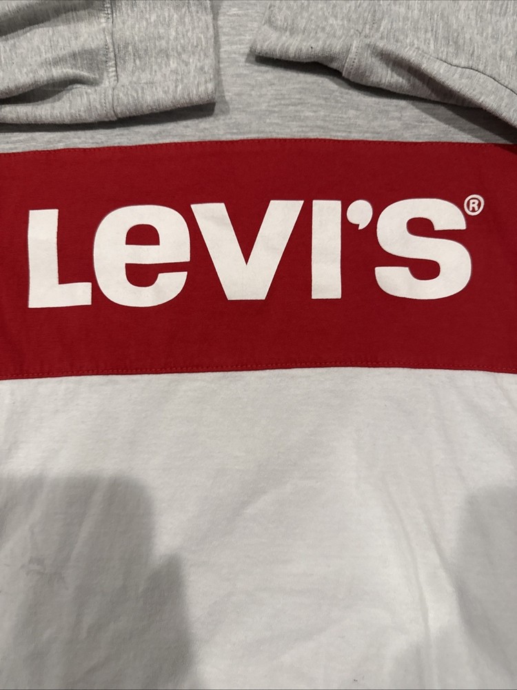 The Levi's Youth Long Sleeve Block Graphic T-Shirt in Grey/Red/White, size XL 13-15 years, is a stylish and comfortable option for boys. Made from cotton, this pullover shirt features a crew neck and long sleeves, perfect for casual occasions during the summer, fall, and spring seasons. The shirt showcases a logo design and is machine washable for easy care. With a regular fit and basic style, this shirt is ideal for active boys attending school.