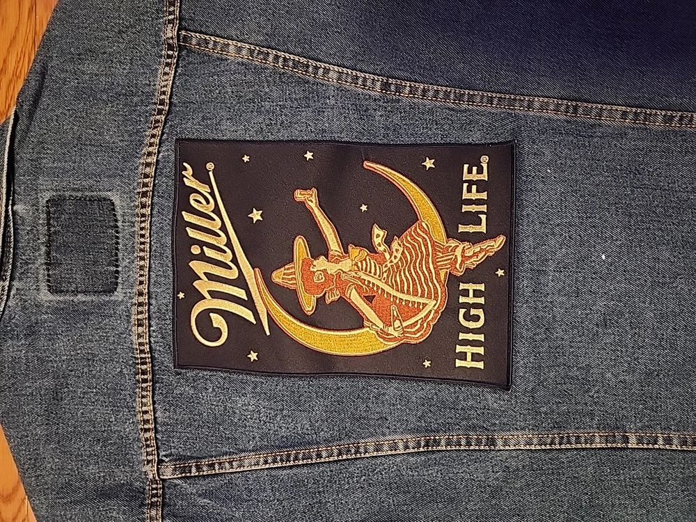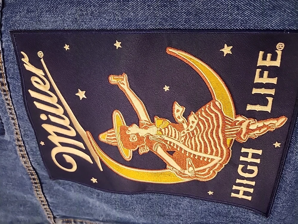 Crafted for the Miller High Life enthusiast, this Levi's trucker jacket boasts a unique back patch that celebrates the iconic beer brand. Its durable cotton denim fabric provides a classic, sturdy feel while maintaining a lightweight structure ideal for layering. The jacket features a solid blue colour that's versatile for various occasions, from casual outings to more put-together looks. The medium-sized, regular fit jacket offers a timeless collared style, perfect for workwear or weekend adventures. It's designed with a button closure for easy wear, and the lack of lining keeps it breathable and comfortable. Embroidered accents add a distinctive touch to this limited edition piece, making it a noteworthy addition to any wardrobe.