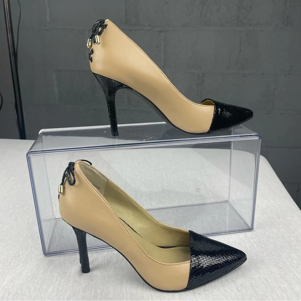 Levity Jalone Brown and Black Pump Heels with Back Bows Women Size 5.5