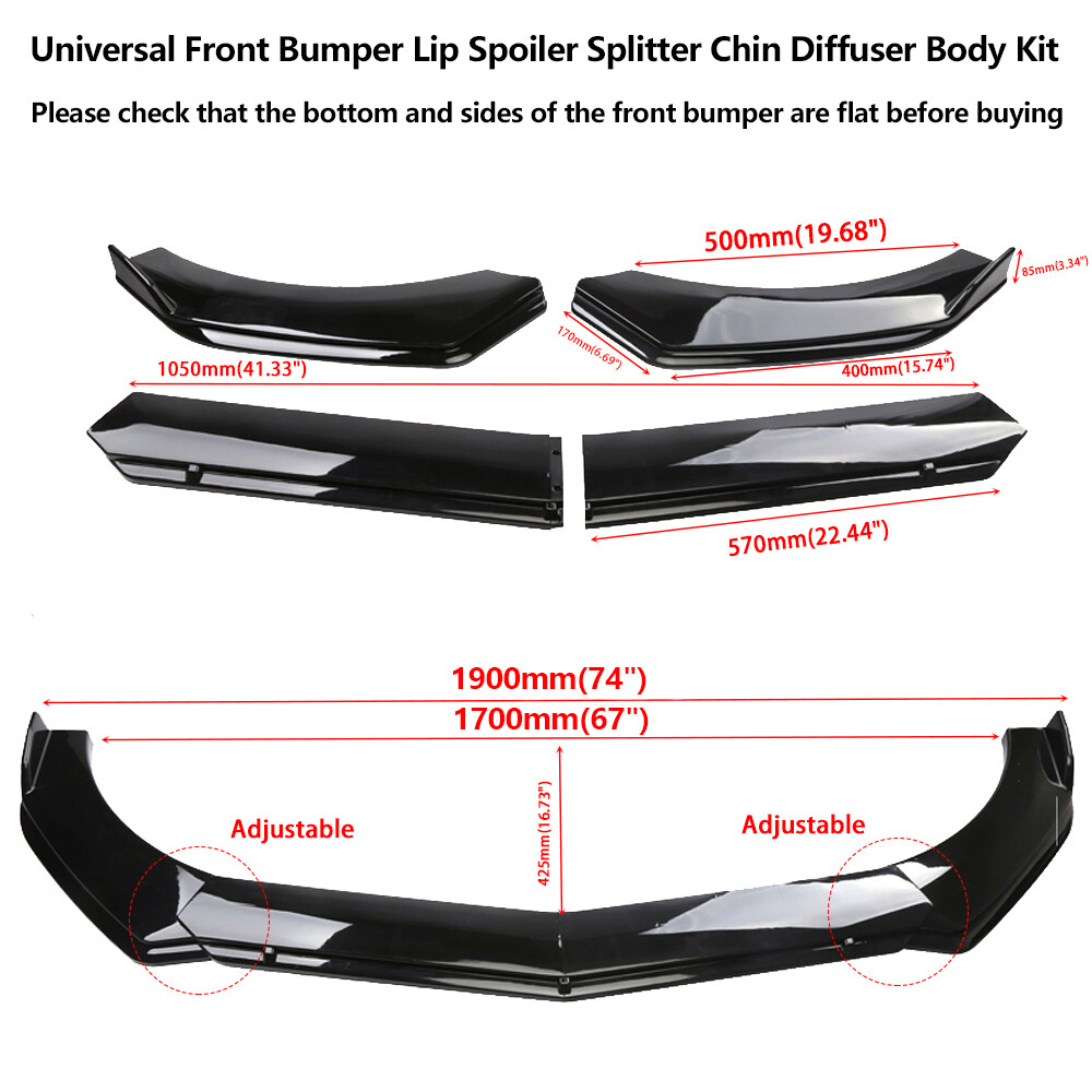 Universal Front Bumper Lip Spoiler Splitter Chin Diffuser Body Kit + Strut Rod Please check that the bottom and sides of the front bumper are flat before buying,avoid installation failure Suitable vehicle type: Fits for car universal: Honda,Toyota,Mazda,Subaru, Volkswagen,Acura,mitsubishi,Cadillac,lexus,Audi,BMW,Mercedes Benz,Ford,VOLVO,Hyundai,Nissan,Infiniti,Buick,Chevrolet,Kia,Dodge (You can contact us if you have any concerns). Feature: Made of Updated durable and sturdy ABS plastic, no deformation in long-term use. Provide an elegant and personalized appearance. Prevent the car from being scraped and improve the level of the decoration of the car. Come with screws, More convenient installation and stable installation. Professional Installation Is Highly Recommended. Specification: Type:Front Bumper Lip Spoiler Splitter Chin Diffuser Body Kit+Strut Rod Material:ABS Color:Black Package Included: 1 x Set Of Front Bumper Lip Spoiler Splitter 1 x Set Of Strut Rod 1 x Bag Of screws Delivery details/Shipping and handing: 1. We will ship your order within 3 working days 2. If you didn't receive the item after 7 days, Please contact us, we'll investigate and solve the delivery problem. If you are satisfied with our service, please leave 5 Stars Rating Thanks! Terms of sales: 1. Please contact us before leaving a Negative feedback if you are not satisfied our service or products. Good communication is helpful for both of us to resolve any problems and issues. We are promising to try our best to provide the best service and 100% satisfaction for valuable buyer like you 2. All of the items are new. If it is not in new conditions, refund is offered. Otherwise, replacement can be offered for defective product. We will exchange or give the seller credit to buyer. 3. Customers are responsible for return shipment fee except for wrong shipment or defective products. About us: If you have any questions, please feel free to email our service specialists 24 Hours a Day, 7 Days a Week, and we will reply you ASAP. If no response within 24 Hours, please check the spam of mail box or kindly re-send it to us. We greatly appreciate your POSITIVE feedback. Please do NOT leave negative feedback without any contact. If you haven't received item in 30 days, please contact us and We will try our best to solve your problem ! We are the professional car decoration dealer, if you would like to make your car a shinny look, please contact us !!!