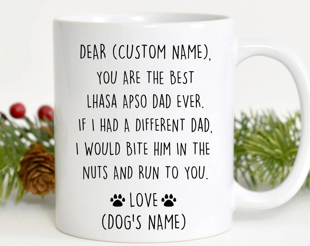 Lhasa Apso Dad Birthday Gift Lhasa Apso Dad Christmas Gift Lhasa Apso Dad Valentine Lhasa Apso Dad Appreciation Funny Lhasa Apso Dad Mug Product Details.. This high quality 11oz. ceramic white mug has a premium hard coat that provides crisp and vibrant color reproduction sure to last for years. Perfect for all hot & cold beverages. The highest quality printing possible is used. It will never fade no matter how many times you wash it. Material: 100% Ceramic. Print both sides. Dishwasher and Microwave Safe. High Gloss + Premium White Finish. Printed in the U.S.A. Personalized & Custom. We support personalized and custom mug to add custom, when placing an order, you can add notes to the "order note" in shipping address section. Also you can contact us directly via message. Shipping Info. Ready to ship in 1 to 2 business days, All products are made-to-order and proudly printed in the United States. Shipped by USPS and DHL, You will receive your order in 5-7 days. Replace & Refund. All products are defective during shipping broken, chipped will be replaced free of charge. You are not satisfied with the product, we will refund 100% money to you. If any other issues arise, please do not hesitate to message, we would be more than happy to assist you.
