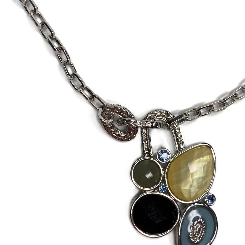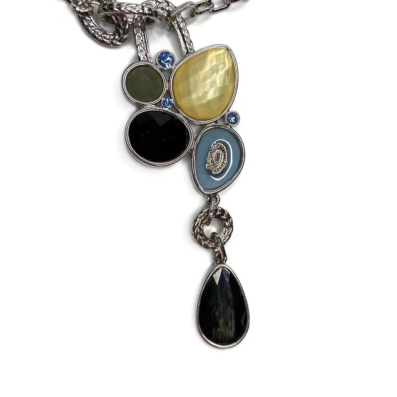 Lia Sophia Azure Y Drop Faceted Bejeweled Cluster Necklace. Great preowned condition. Silver tone with Genuine Mother-of-Pearl, Cut Crystals and Resin Stones in shades of Blue. “Y" Style with non-detachable pendant. Lobster claw closure. Drop measures 11 inches