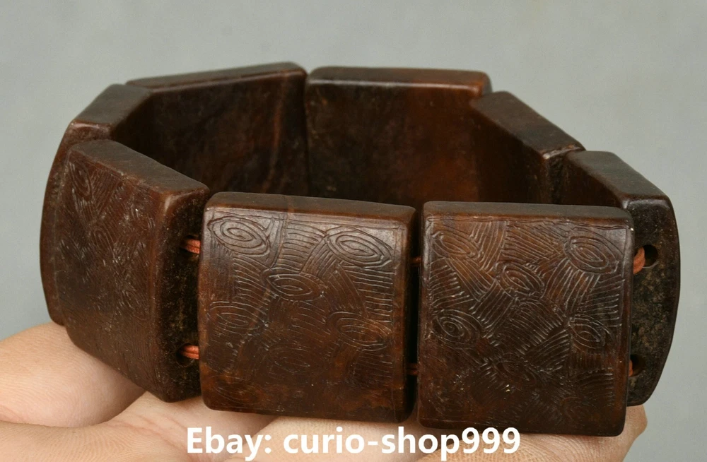 **** Welcome to our antique & Collectable Shop : Porcelain**** Description: Here is Unique Liangzhu Culture Old Jade Pure Hand Carving Pattern Bracelet Hand Chain.It is in good condition, and was created by skilled craftsmen in traditional style with fine handcrafts.This is a great piece of valuable collection, a valuable personal alter or a very good present. the handwork is very fine with incredible detailling. Don't miss out this chance to get it.Wish you good luck! Material : Chinese Style : Old Jade Sizec : Heigh t 10.5 Long 2.6 breadth 0.8 (cm) Condition Perfect Condition. Perfect, with no scratc hes, flaws or repairs. Weight:0.7 KG----included the weight of packing materials Shipping cost to all over the world countries in Free Honored Customers: We are selling the collectibles products and crafts in Beijing ,China since 1993 and collected them all over the world all the time . In our shop the bronze sculpture, animal, vase, urn, flowerpot,Incense Burner.Table chair sets. Militaria goods. buddha statues, Bodhisattva Statues, Buddhist Ritual Items etc is our speciality .Many of the items we sell come from our own personal collection and have been in our family for a very long time .My great-grandfather was the first in this family to start collecting art & antiques when he still lived in San Xi and Tibet around 1922 ,some of the paintings he once collected can now be seen in museums around the globe.We won't make money from t he shipping cost, if you dislike the item when you receive it,we can refund all of your money to you within thirty days. Please confidence for bidding . We recommend the combine shipping and offer you an big price discount if you order more items together ! 2023.05.08 四 号