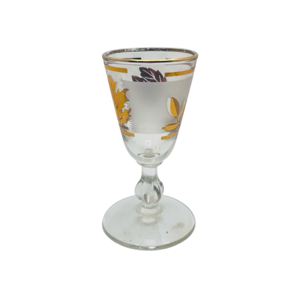The Libbey 24K Gold Leaf Cordial Glassware Set includes six pieces of round shot glasses with a vintage/retro design featuring gold leaves. These elegant glassware pieces are perfect for all occasions and add a touch of MCM style to any home bar or kitchen decor. Made in the United States. Each glass can hold up to 2 ounces. 3.5 inches in height and 2 inches in width, making it a unique and eye-catching addition to your collection. No notable flaws such as chips or signs of wear from age. Please note I try to get the most accurate pictures and at times there might be a reflection or variation in coloring due to the lighting. Approximate Dimensions: 3.5" Tall Holds 2 fluid ounces Total weight without packaging (11 ounces) SHIPPING - All items are shipped within 1-3 business day of receiving payment. I do not ship during weekends and/or holidays. The system will compute your postage based on your zip code. I will select the most cost-efficient method of shipping based on package rates at the time of shipping. If you want a particular service, you will need to let me know at the time of sale. RETURNS - All sales are final unless the item does not match the item description product MUST be returned within in 30 days. Please check my other items and thank you for supporting our small family business!