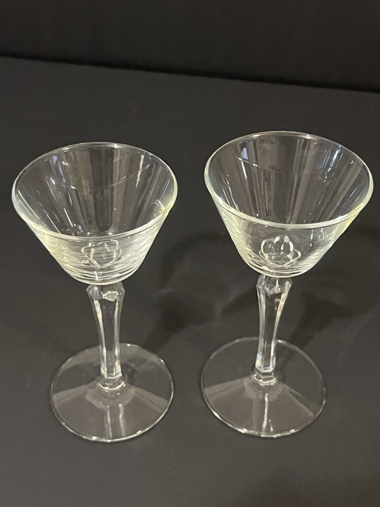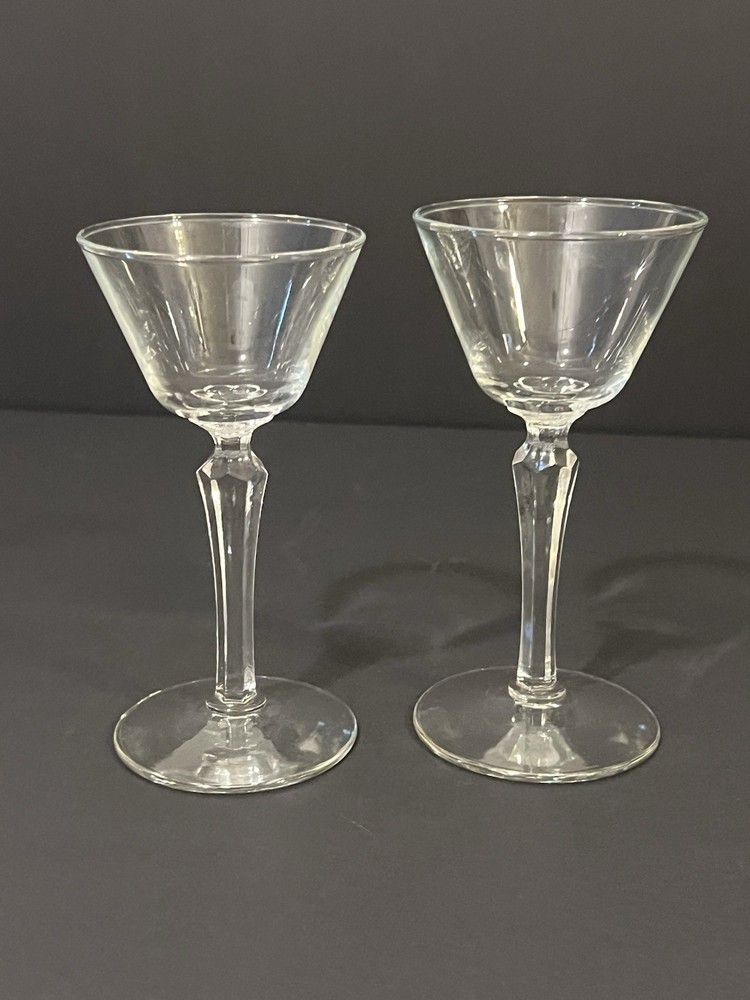 Elevate your home bar collection with the Libbey Cocktail Glass Set, a pair of exquisite geometric long stem glasses that combine modern design with classic elegance. Each glass holds up to 2 ounces of liquid, perfect for your favorite cocktails, and is crafted from durable, clear glass material that showcases your drink's color and texture beautifully. Ideal for anniversaries, parties, or simply to add a touch of sophistication to your everyday gatherings, this two-piece set is a timeless addition to your drinkware collection. The set boasts a vintage look, hailing from the 1960s, and fits seamlessly into a variety of decors. Whether you're mixing up a classic martini or serving up some homemade sangria, these glasses are sure to impress your guests.