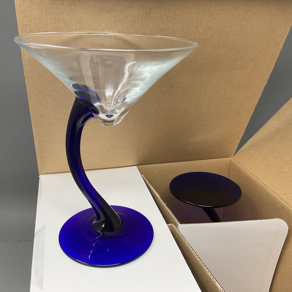 The 4 LIBBEY Curved Stem Swerve Cobalt Blue Martini Cocktail Glasses are a stylish and modern addition to any home bar or kitchen collection. These elegant round glasses have a unique swerve design and a vibrant cobalt blue color, perfect for all occasions. With a capacity of 6.5oz and a set of four, they are the ideal choice for serving a variety of cocktails in a sophisticated manner. Made of high-quality glass, these martini glasses from Libbey are sure to impress guests and enhance any drinkware collection.