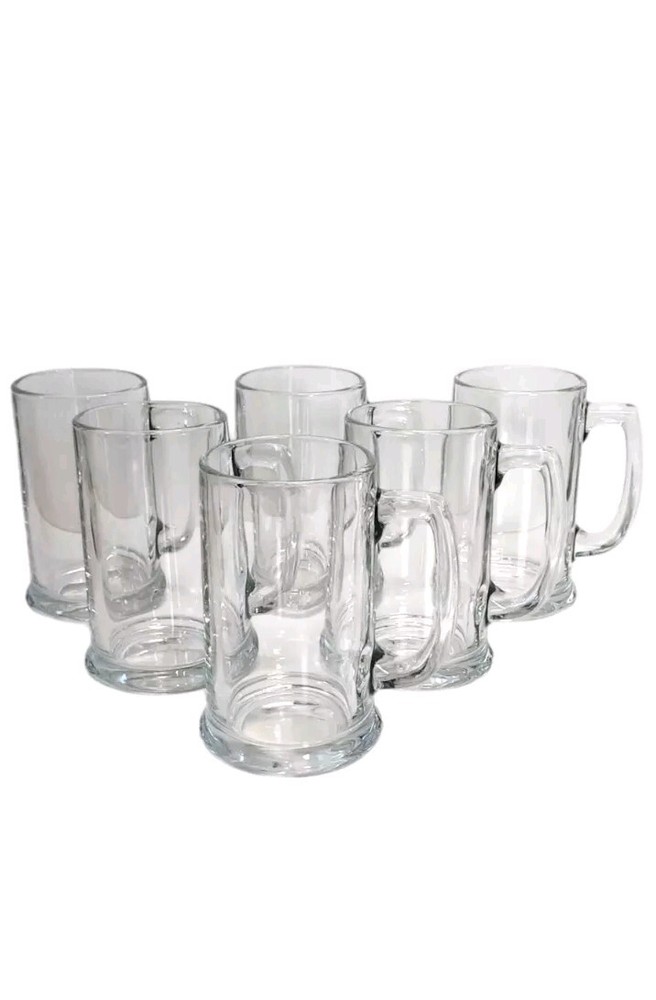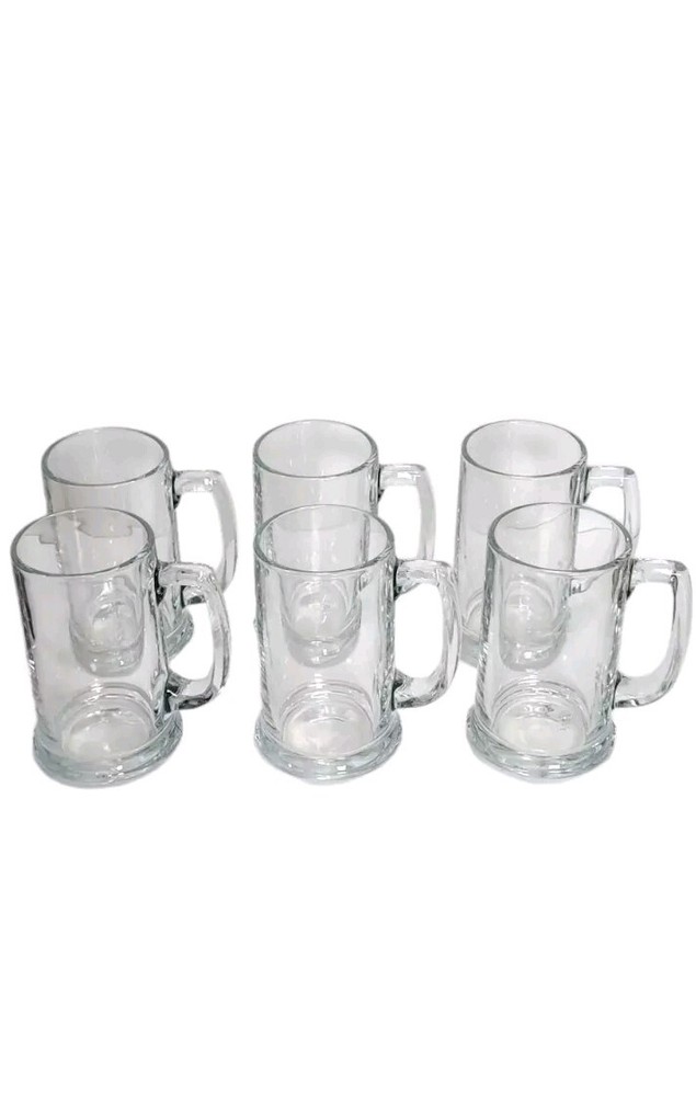 This Beer Mug Set includes six beer mugs with an approximate capacity of 12oz. Made of sturdy glass, these vintage-style mugs feature a classic beer mug design. Perfect for various occasions like bachelor parties, Christmas, & birthdays. These glasses are in excellent condition, very, very minor wear. There is no damage, such as chips, cracks, repairs, or heavy scratches. They all have a number & an L embossed on the bottom, for Libbey. These display beautifully & are 100 functional. This set will ship with immense care & fast! If you have any questions or would like more pictures of a certain angle I may have missed just reach out & I will reply promptly. Thank you!