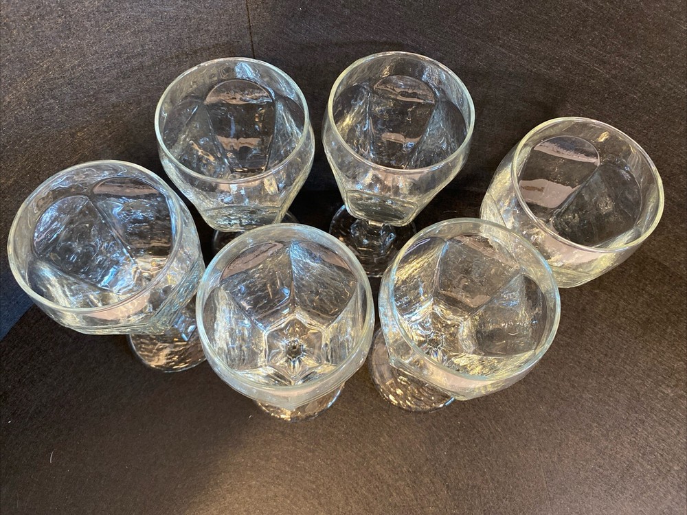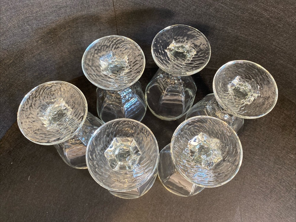 Set of 6 in Excellent condition. No chips or cracks. Paneled goblet with textured base. Heavy glass. All measurements are in pictures. Holds approximately 10oz. Ships the next business day after payment😊