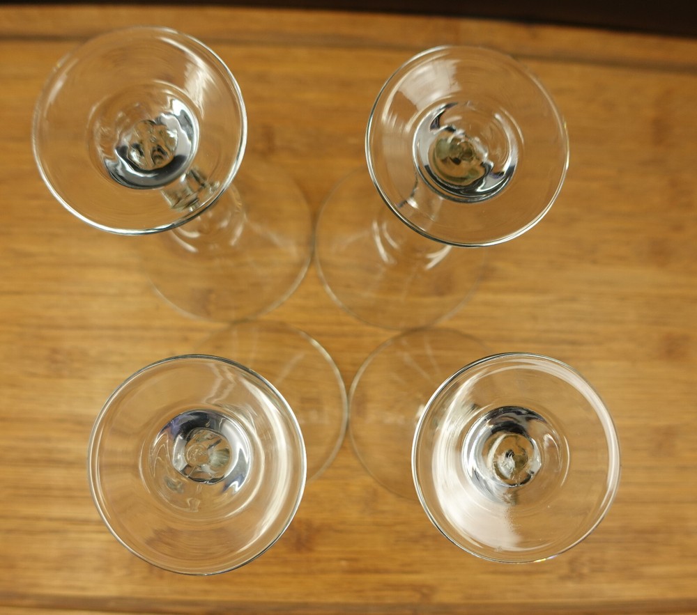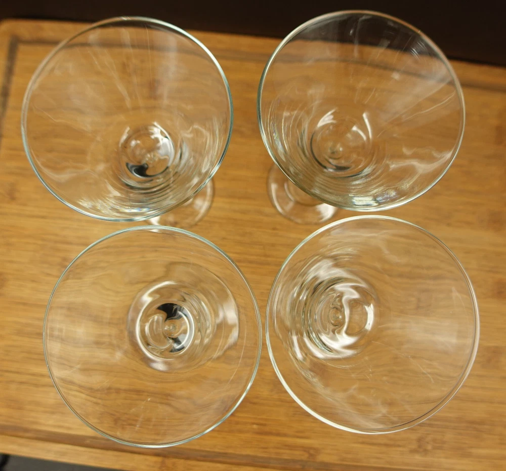 See Pictures for Condition Before buying: Has minor scratches/wear , has some residue/water/washer stains that most likely can be cleaned with further washing, one glass is slightly smaller than the other three If you have any questions, Feel Free to Message me!
