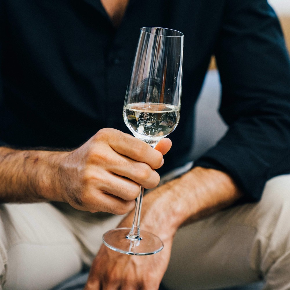 The Libbey Signature Greenwich 4-piece Champagne Flute Glass Set possesses unprecedented brightness, clarity, and resilience. Admire its stable foot and caress its pulled stem seamlessly transitioning to the angular bowl. Breathe in the effervescence and bouquet. And touch your lips to the finely honed rim to complete your sensual journey.Luxurious Signature family is known as the finest stemware on the market; state-of-the-art ClearFire glass composition provides thinner walls of superior brilliance and strengthReinforced flat foot delivers extra stability; pulled stem creates solid and seamless transition to slender, angular champagne bowl; laser-cut rim offers even, beadless, chip-resistant edgeDurable and dishwasher safe for quick, easy cleanup; to help preserve your glassware, please Free Shipping Over $49.99* Details Libbey Signature Greenwich Champagne Flute Glasses, 8.25-ounce, Set of 4 - Set Product Description: The Libbey Signature Greenwich 4-piece Champagne Flute Glass Set possesses unprecedented brightness, clarity, and resilience. Admire its stable foot and caress its pulled stem seamlessly transitioning to the angular bowl. Breathe in the effervescence and bouquet. And touch your lips to the finely honed rim to complete your sensual journey. Luxurious Signature family is known as the finest stemware on the market; state-of-the-art ClearFire glass composition provides thinner walls of superior brilliance and strength Reinforced flat foot delivers extra stability; pulled stem creates solid and seamless transition to slender, angular champagne bowl; laser-cut rim offers even, beadless, chip-resistant edge Durable and dishwasher safe for quick, easy cleanup; to help preserve your glassware, please refer to our general glass handling guidelines Made lead-free Includes 4, 8-ounce champagne flute glasses TBD1
