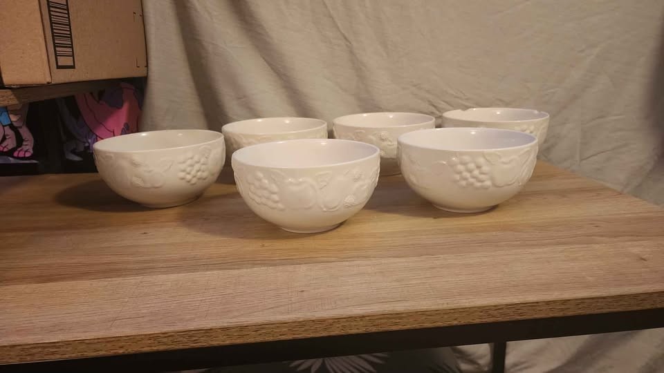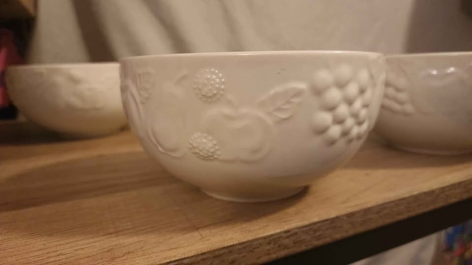 These bowls are absolutely stunning—the embossed fruit detail adds such a classy, vintage touch to any table setting. They're the perfect size for salads, sides, or even snacks, and the off-white color blends beautifully with any decor. I love that they’re microwave and dishwasher safe, making cleanup a breeze. The quality is fantastic, and they feel sturdy yet elegant. A must-have for anyone who loves stylish yet practical serving pieces!