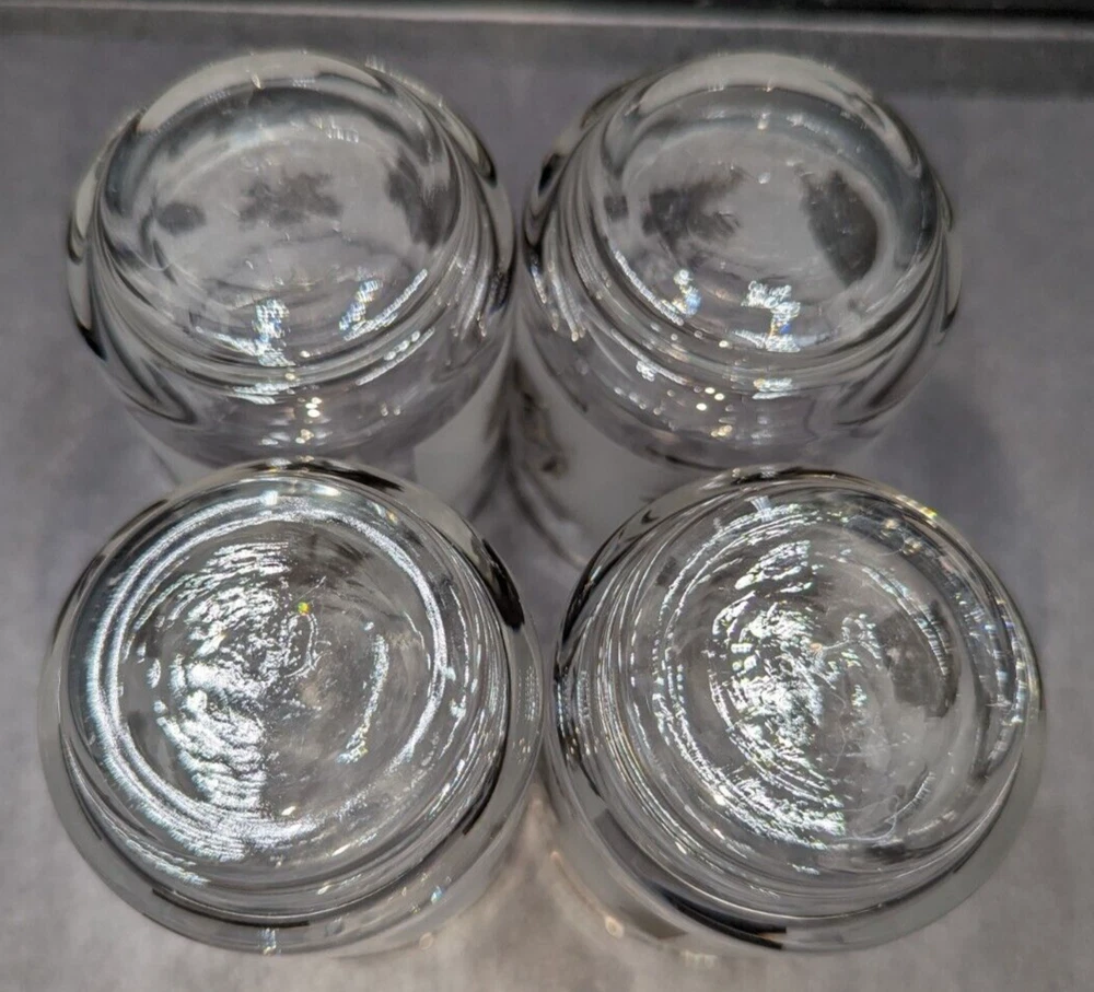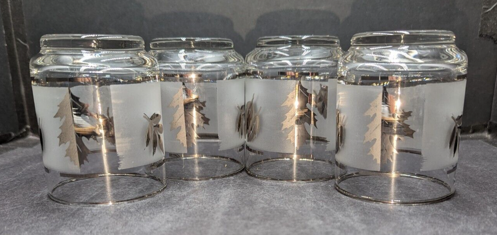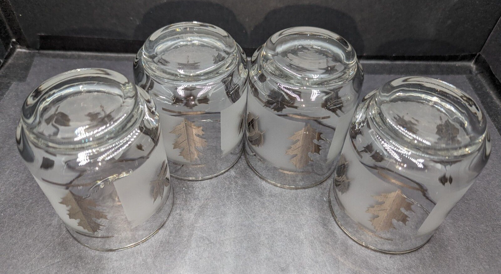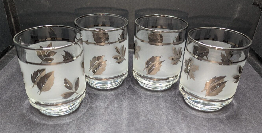 Libbey Silver Foliage Leaf 5 oz. Flat Tumbler Juice Glasses Set of 4 Drinkware. These tumblers are in lovely pre-owned condition with no damage. Please see the photos. All of my items are carefully packed for shipping, no matter their value - $5 items are wrapped with the same care as a $200 item. My goal is to have your purchase arrive safely. Large, heavy and fragile items are harder to use combined shipping with but just ask if you would like to purchase more than one item and I am more than happy to do so if feasible. Measurements are approximate or as close as I can get. Also, the color you see many not be the exact color depending on your computer or phone settings. Unpaid items will result in the buyer being blocked from further purchases. Please remit payment right away so we can get your item shipped out quickly.