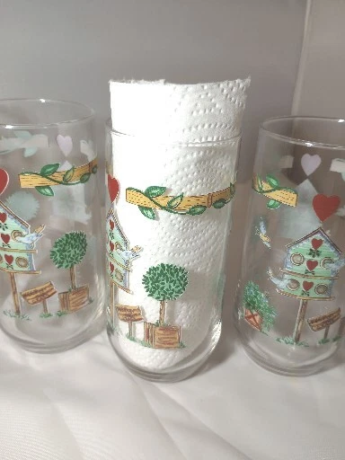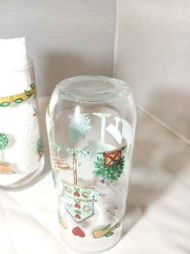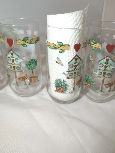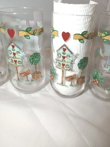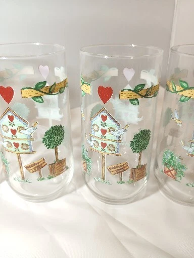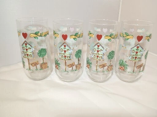 Add a touch of country charm to your drinkware collection with this set of four Libbey Thompson Pottery Birdhouse Glass Water Tumblers. Featuring a heart and vine shape, these 16 oz glasses are perfect for all occasions. The multicolor glasses are made of glass and are dishwasher safe, making them a practical and stylish addition to your farmhouse-themed kitchen. These vintage original tumblers were produced in the United States during the 1990s using a pottery technique. The glasses are branded with Libbey's signature and are licensed reproductions. Ideal for farmhouse and country-themed events, these tumblers are a must-have for collectors.