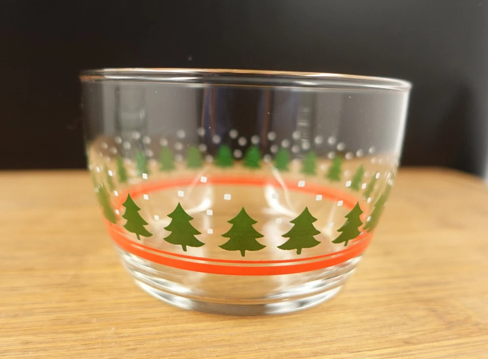 Manufacturer:LibbeyPattern:Winter Trees and SnowColor:ClearShape:RoundTheme:WinterType:BowlBrand:LibbeyVintage:YesCountry/Region of Manufacture:CanadaOriginal/Licensed Reproduction:OriginalOccasion:ChristmasMaterial:Glass