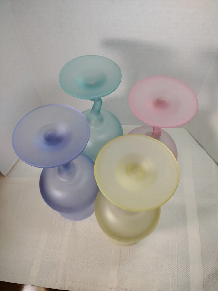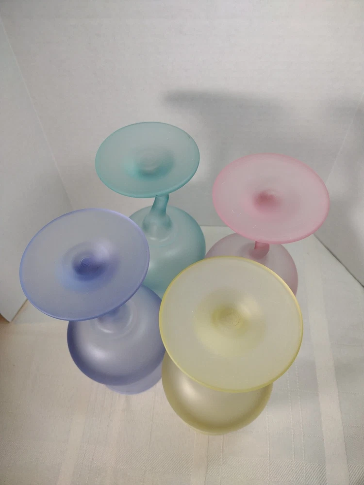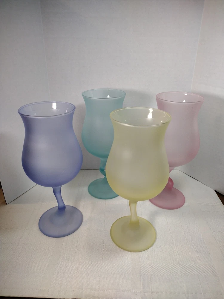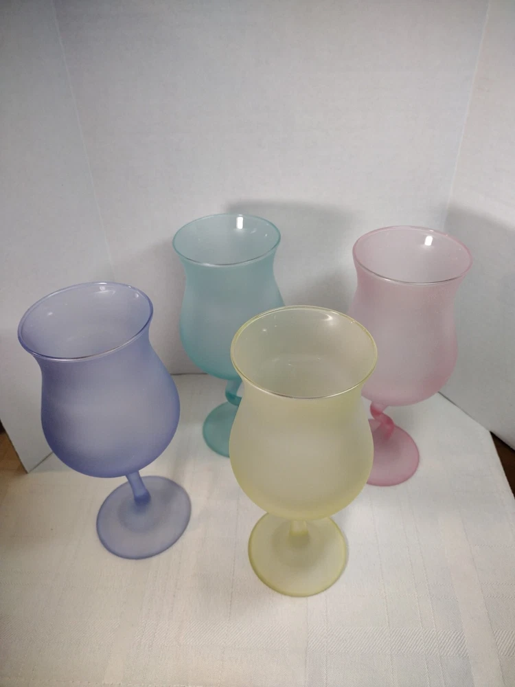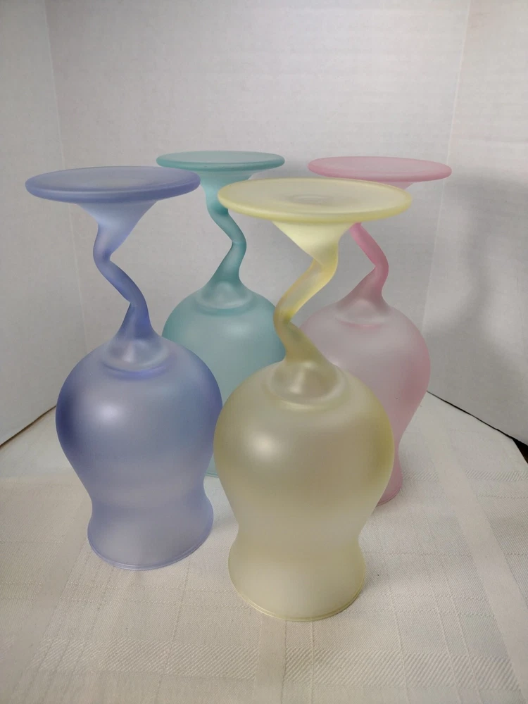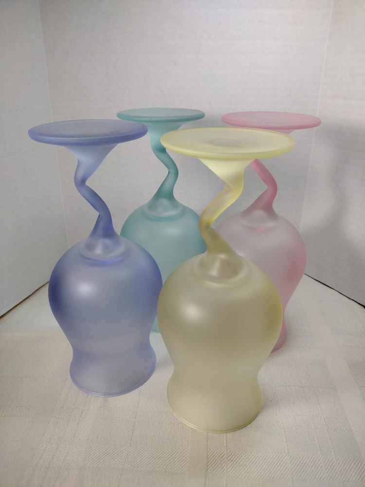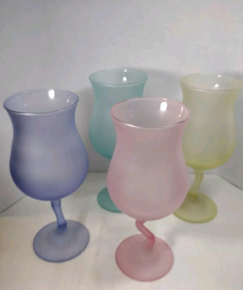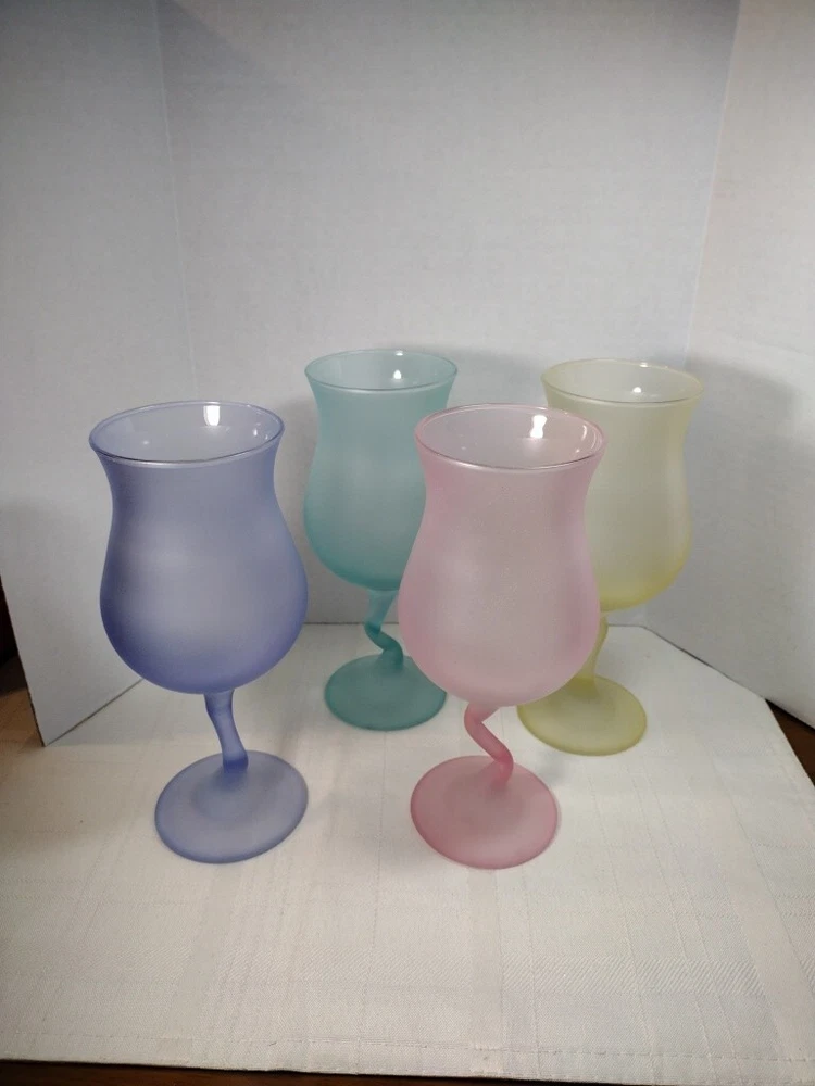 Beautiful cocktail or large juice goblets zigzag stems these have been in a closet satin frosted look. No Chips No Cracks. Holds 12 ozs