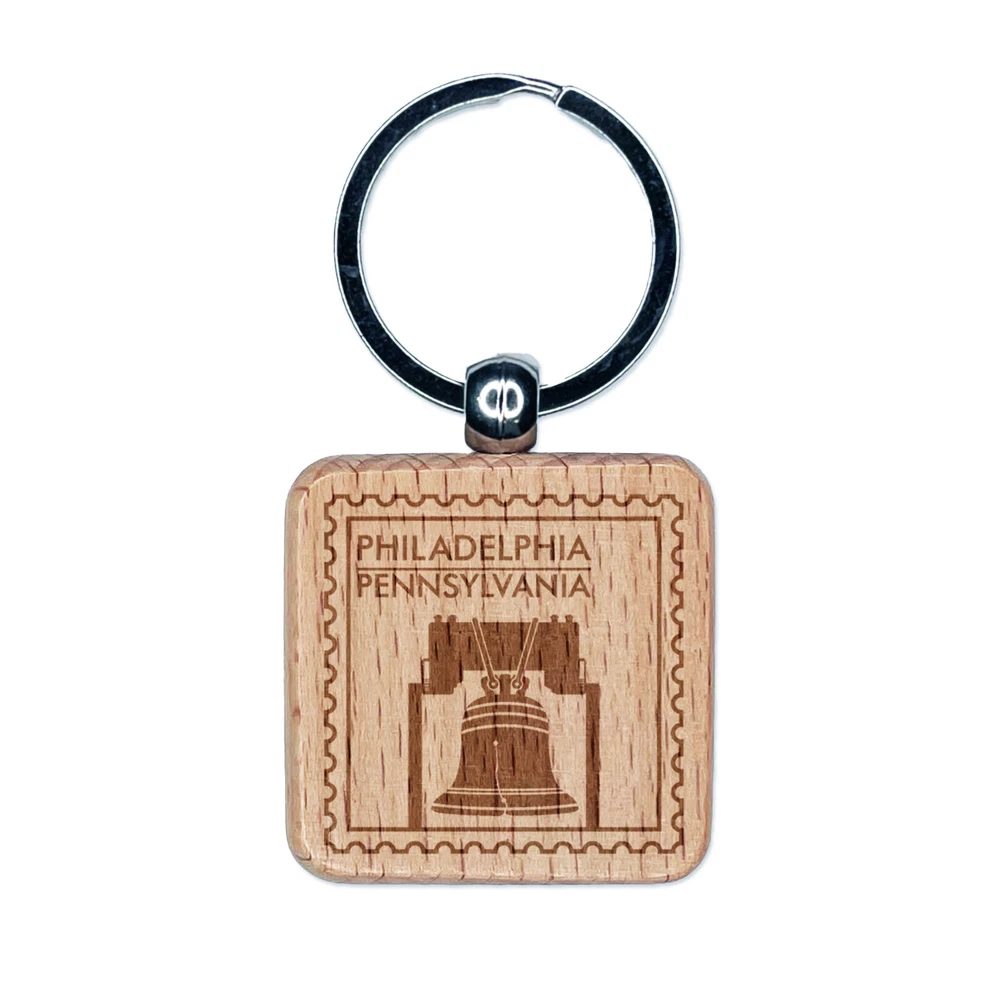 Liberty Bell Philadelphia Pennsylvania Travel Engraved Wood Square Keychain