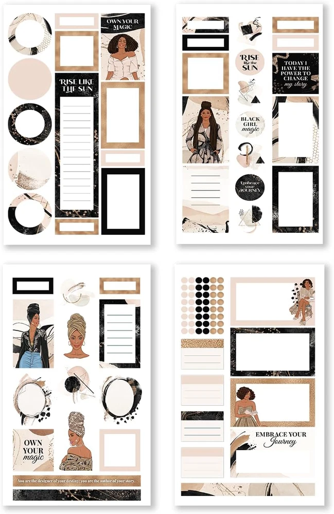 Black Girl Magic Planner Stickers Book Volume 2 for Planners Calendars Journals Celebrate Black Girl Magic: Unleash the essence of Black Girl Magic with our exclusive Black Girl Magic Sticker Book #2. Designed with a mesmerizing black and gold theme, this sticker collection is a powerful symbol of Black women's empowerment, strength, and resilience. Empowering Design: Each sticker in our Black Girl Magic Sticker Book #2 is crafted to celebrate the beauty, grace, and indomitable spirit of Black women. These stickers are more than just decorative items; they're emblems of pride and a testament to the rich heritage and legacy of Black excellence. High-Quality Craftsmanship: Our stickers are made with high-quality materials ensuring durability and longevity. The striking black and gold theme stands out, making each sticker a work of art that enhances any project with its bold and beautiful design. User-Friendly: Easy to peel and apply. Enhance your planners, notebooks, and other personal items effortlessly with our easy to apply stickers. You will love the representation, vivid colors, and ease of use, making them a joy to use in various creative projects. Versatile: You can use these stickers as journaling stickers, scrapbooking stickers, stickers on laptop, stickers, journal stickers ... and so many more! Rongrong is an independent, woman owned US Based small business who is committed to inclusivity and the empowerment of women through her artwork. Product Description Check out more of Rongrong's Beautiful Planner Sticker Books! Add to Cart Add to Cart Add to Cart Add to Cart Add to Cart Customer Reviews 4.5 out of 5 stars 26 4.7 out of 5 stars 229 4.9 out of 5 stars 60 4.7 out of 5 stars 32 4.7 out of 5 stars 21 4.5 out of 5 stars 59 4.8 out of 5 stars 18 Price $33.00 $ 33 . 00 $29.99 $ 29 . 99 $21.99 $ 21 . 99 $33.00 $ 33 . 00 — $33.00 $ 33 . 00 — Number of Pages 24 21 27 24 24 24 24 Theme Bookworm Planner Stickers Motivational Planner Stickers Rainbow Boxes Planner Stickers Coffee Planner Stickers Fantastical Planner Stickers Self Love Planner Stickers Seasonal Planner Stickers Works in Planners / Journals ✔ ✔ ✔ ✔ ✔ ✔ ✔ Hand-Drawn Illustrations ✔ ✔ ✘ ✔ ✔ ✔ ✔ Rongrong Product Line Premium Premium Everyday Premium Premium Premium Premium Check out more of Rongrong's Beautiful Planner Sticker Books! Add to Cart Add to Cart Add to Cart Add to Cart Add to Cart Add to Cart Add to Cart Customer Reviews 5.0 out of 5 stars 5 4.7 out of 5 stars 17 4.8 out of 5 stars 12 5.0 out of 5 stars 15 4.6 out of 5 stars 18 5.0 out of 5 stars 8 4.7 out of 5 stars 19 Price $22.99 $ 22 . 99 $21.99 $ 21 . 99 $16.99 $ 16 . 99 $21.99 $ 21 . 99 $21.99 $ 21 . 99 $22.99 $ 22 . 99 $21.99 $ 21 . 99 Number of Pages 25 25 24 24 24 24 26 Theme Pastel Box Planner Stickers Neutral Box Planner Stickers Junk Journal Stickers Flower Planner Stickers Seasonal Box Planner Stickers Aesthetic Planner Stickers Journal Stickers Works in Planners / Journals ✔ ✔ ✔ ✔ ✔ ✔ ✔ Page Size 9.50" X 5.75" 9.50" X 5.75" 9.50" X 5.75" 9.50" X 5.75" 9.50" X 5.75" 9.50" X 5.75" 9.50" X 5.75" Rongrong Product Line Everyday Everyday Everyday Everyday Everyday Everyday Everyday Item model number 1 Style Modern Number of Items 1 Pattern Letter Print, Geometric Country of Origin USA Embellishment Glitter Theme Planner Stickers Cartoon Character Black Woman Number of Pieces 1 Age Range (Description) Adult Item Form Sheet Package Dimensions 9.45 x 5.75 x 0.28 inches Reusability Single Use Indoor/Outdoor Usage Indoor Shape Rectangular Unit Count 1.0 Count Item Weight color: #000000; /* Black text for readability */ background-color: #ffffff; /* White background */ line-height: 1.6; } .header-text { color: #000000; /* Black text for header */ background-color: #f0f0f0; /* Light grey header */ padding: 20px; margin-bottom: 15px; /* Reduced margin */ font-size: 32px; text-align: center; border-radius: 8px; } .container { padding: 40px; border-radius: 15px; background-color: #ffffff; /* Keep container white */ margin-bottom: 15px; /* Reduced margin */ } .part { padding: 20px; /* Reduced padding */ border-radius: 10px; background-color: #f9f9f9; /* Light grey for sections */ margin-bottom: 15px; /* Reduced margin */ } .part h3 { text-align: center; color: #000000; /* Black for headings */ font-size: 26px; margin-bottom: 10px; /* Reduced margin */ font-weight: bold; /* Keep headings bold */ } .intro-list1 li { margin-bottom: 8px; /* Reduced margin */ font-size: 16px; color: #000000; /* Black text for list items */ } .description-text, .item-specifics-text { font-size: 16px; /* Same font size for both */ color: #000000; /* Black text for descriptions */ } .footer-text { text-align: center; color: #000000; /* Black for footer */ font-size: 24px; font-weight: 600; margin-top: 15px; /* Reduced margin */ padding-top: 10px; /* Reduced padding */ } .footer-text p { font-size: 16px; color: #000000; /* Black text for footer text */ } \u003C/style> Black Girl Magic Planner Stickers Book Volume 2 for Planners Calendars Journals\u003C/h2> Celebrate Black Girl Magic: Unleash the essence of Black Girl Magic with our exclusive Black Girl Magic Sticker Book #2. Designed with a mesmerizing black and gold theme, this sticker collection is a powerful symbol of Black women's empowerment, strength, and resilience.\u003C/li> Empowering Design: Each sticker in our Black Girl Magic Sticker Book #2 is crafted to celebrate the beauty, grace, and indomitable spirit of Black women. These stickers are more than just decorative items; they're emblems of pride and a testament to the rich heritage and legacy of Black excellence.\u003C/li> High-Quality Craftsmanship: Our stickers are made with high-quality materials ensuring durability and longevity. The striking black and gold theme stands out, making each sticker a work of art that enhances any project with its bold and beautiful design.\u003C/li> User-Friendly: Easy to peel and apply. Enhance yo