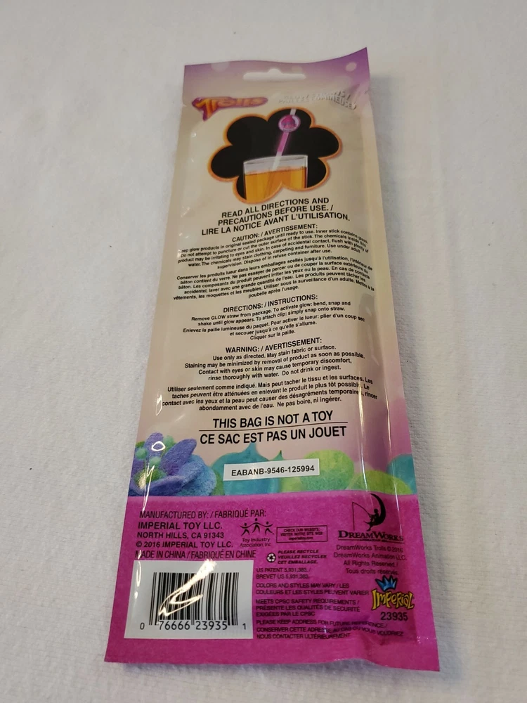 Licensed Glow Stick Straws (Licensed Trolls™) pack of 3.