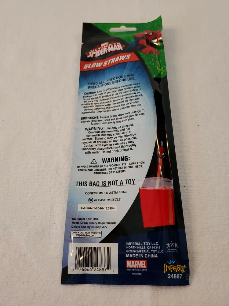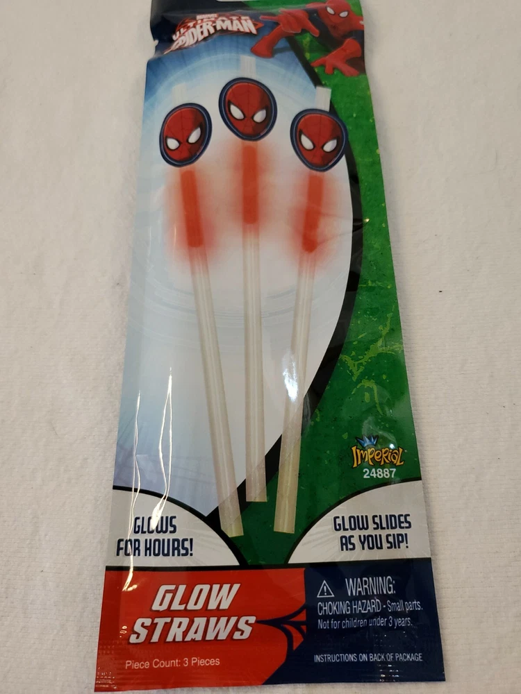 Licensed Glow Stick Straws (Licensed Ultimate Spider-man™) pack of 3