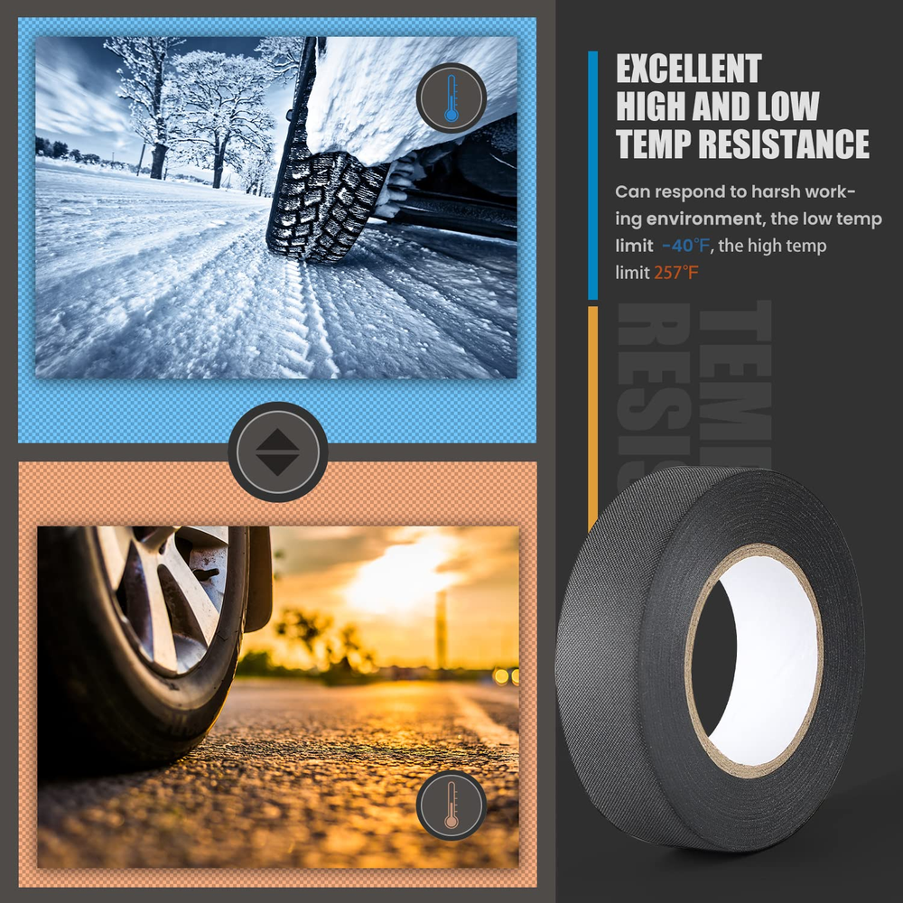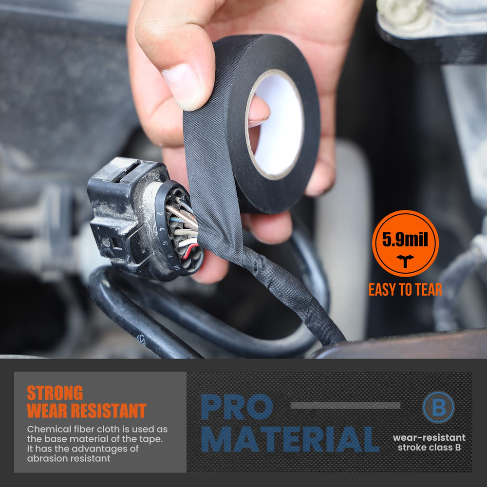 This electrical tape is a game-changer! The 6-pack is a great value, and the no-residue fabric tape sticks strong without leaving a mess. Perfect for wiring harnesses, high temps, and automotive use—holds up better than regular vinyl tape. Easy to tear by hand and wraps smoothly. Super durable and reliable—definitely stocking up on more!