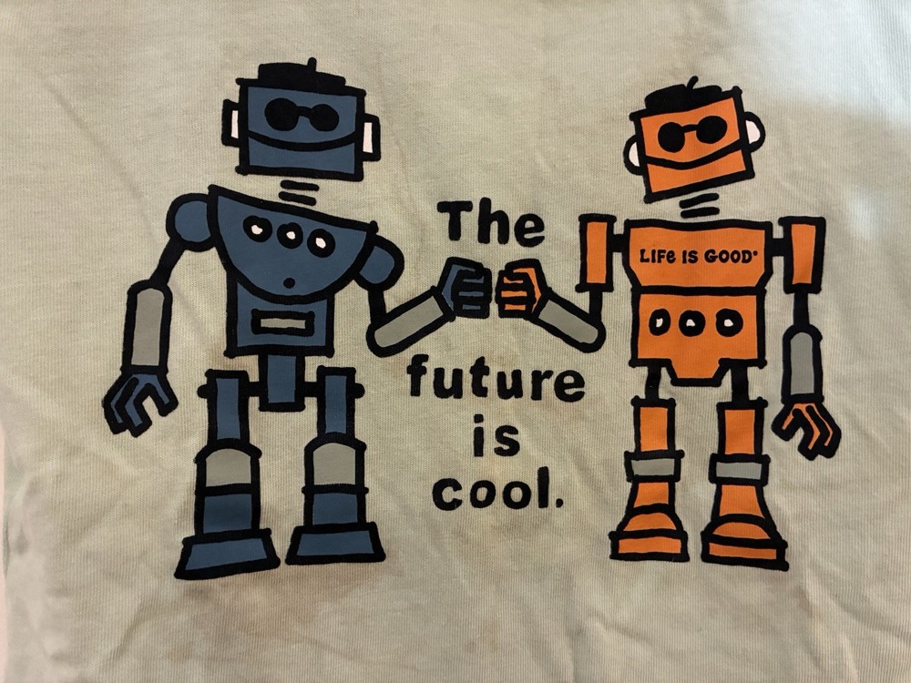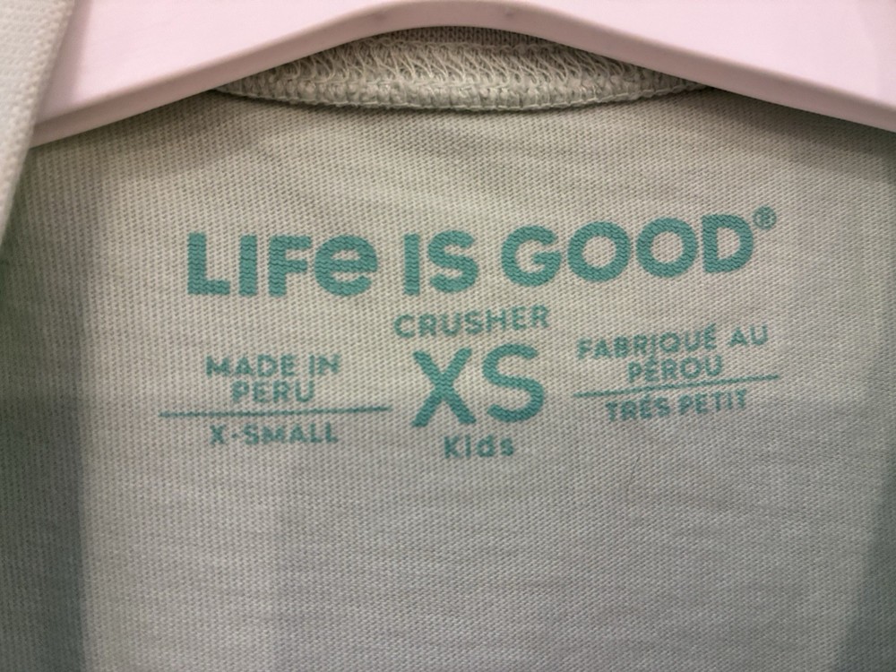 Life Is Good Kids Boys Robots 100% Cotton Short Sleeve Crusher Shirt Lt Green XS. Condition is pre-owned. Smoke free, pet free home. Shipped via USPS Ground Advantage. In fair condition. There are large stains on the front. Free of rips.