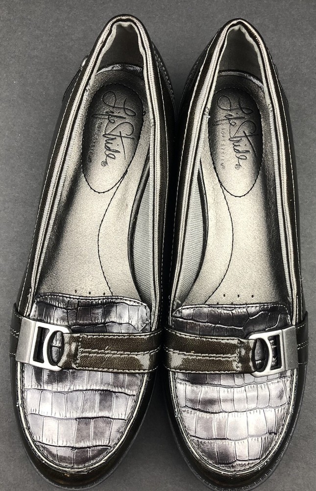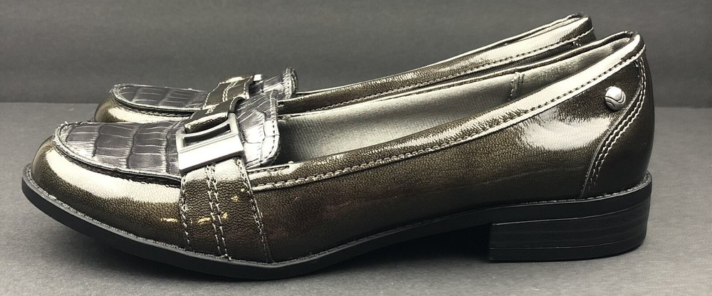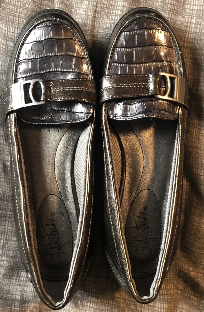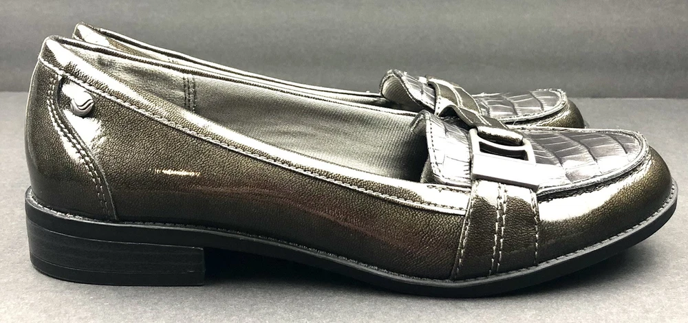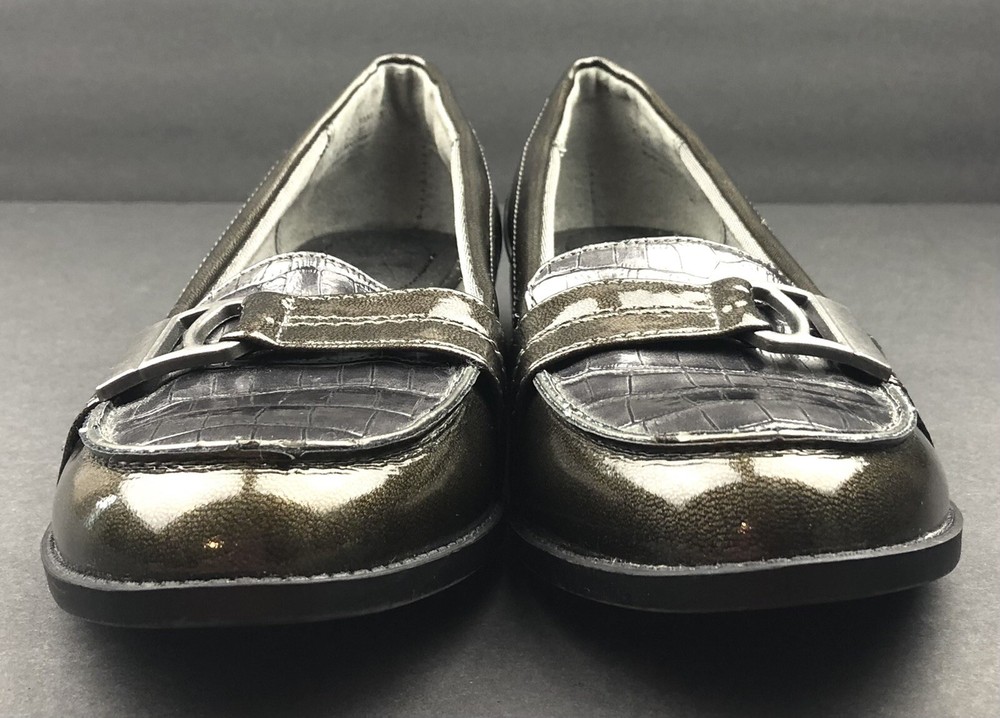 Life Stride Women’s Dark Green /Gray Loafer Croc Detail Nickel Buckle Size 7M. Excellent pre owned condition. Bin L