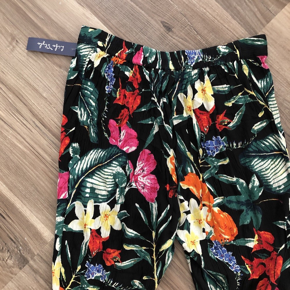 Life Style black floral print flare pants size XL NWT. Life Style black floral print flare pants size XL NWT/ has elastic back waist / flare bottoms slight stretch/ perfect for beach, vacations , or luaus Waist 14.5” across Rise 12.5” Inseam 30” Approximate measurements #5