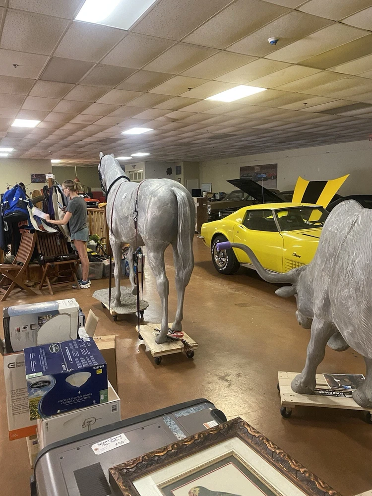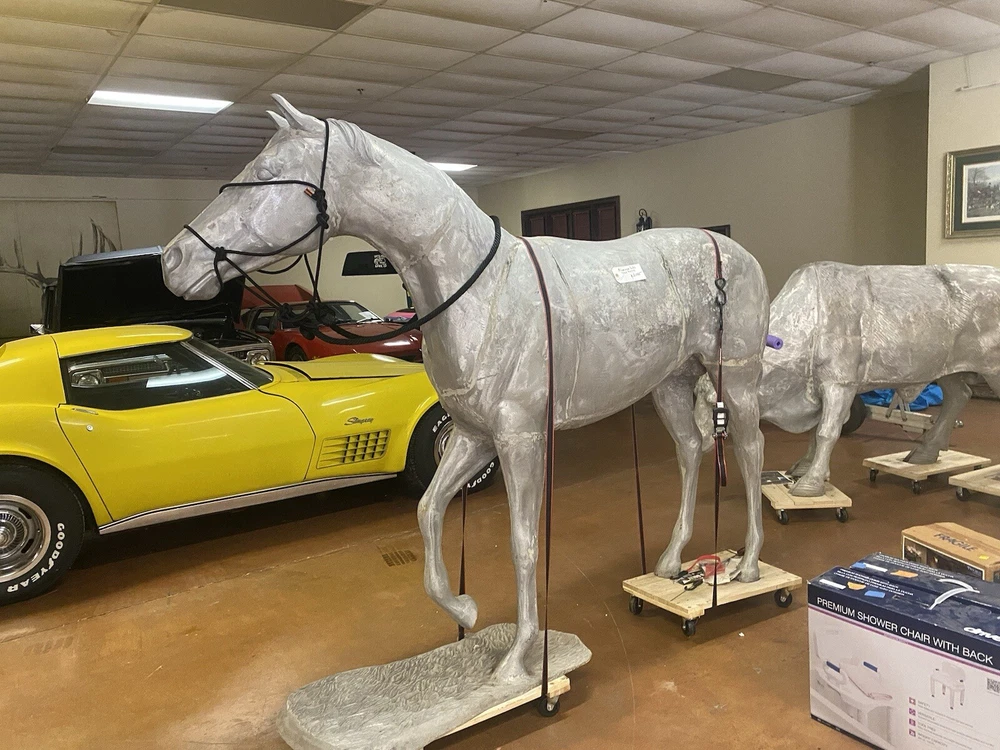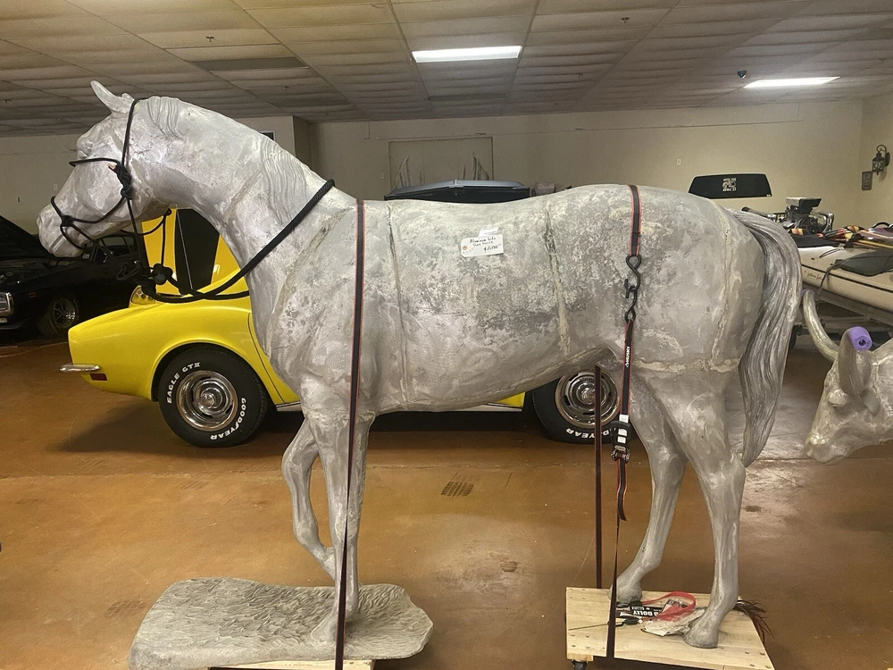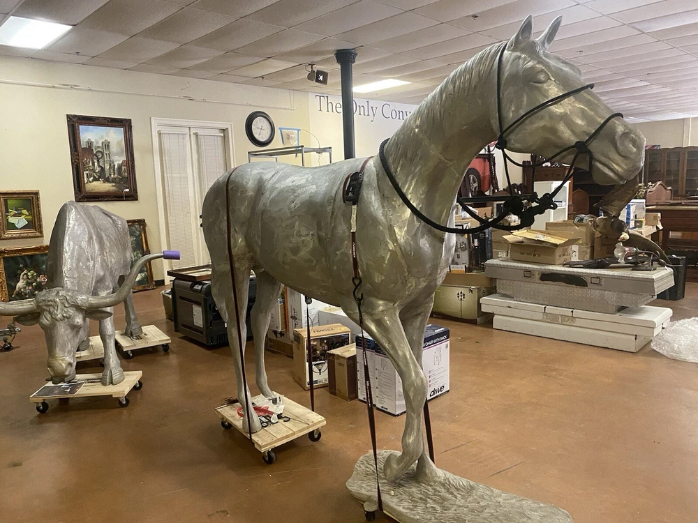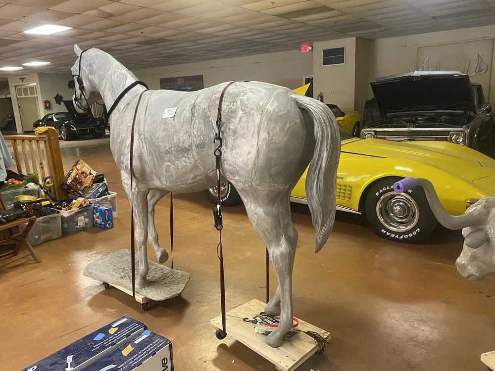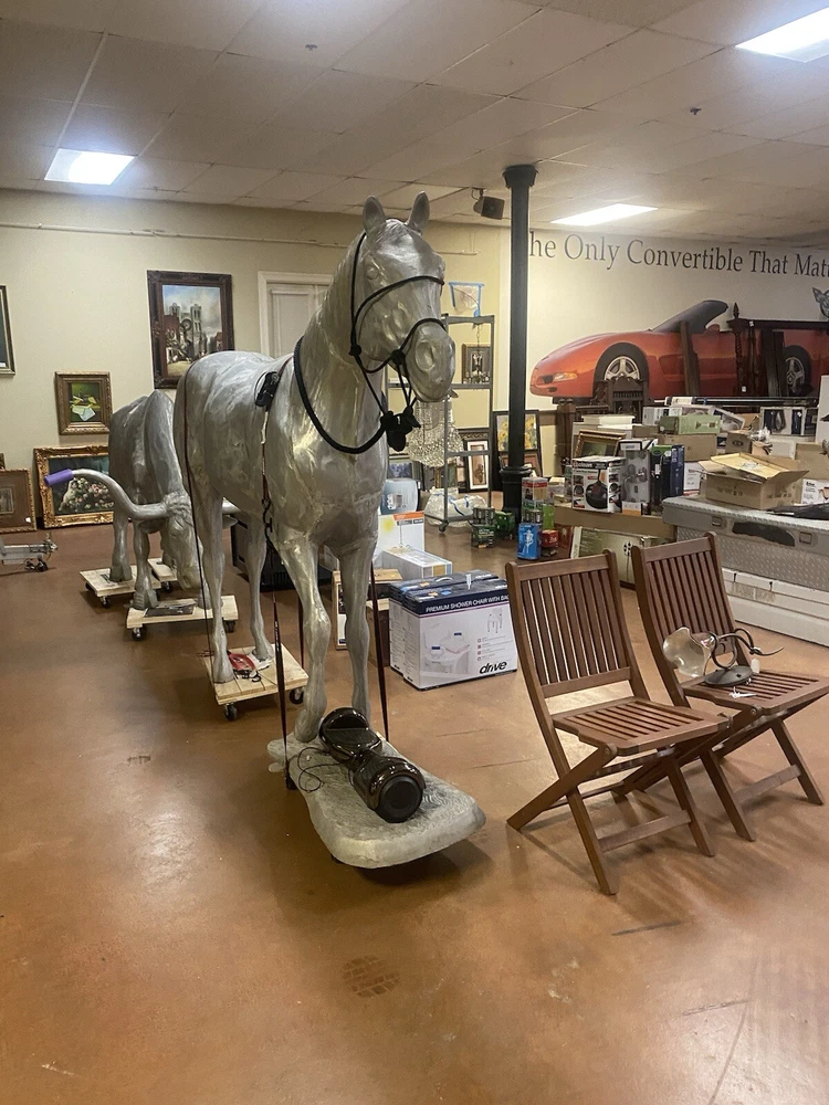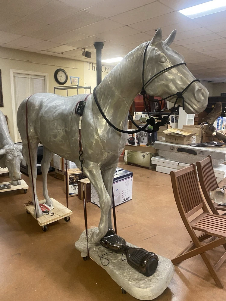 This stunning life-size horse statue is a must-have for any animal lover. Crafted from high-quality aluminum, this statue is both durable and weatherproof, ensuring it will withstand the elements for years to come. The brushed aluminum finish gives it a sleek and modern look that will complement any home or garden decor. Standing at 71 inches tall and 31 inches wide, this statue is perfect for indoor and outdoor display. Whether you're looking to add a touch of elegance to your living room or create a focal point for your garden, this horse statue is sure to impress. With its intricate details and realistic design, it's no wonder why this statue is a popular choice among collectors and enthusiasts alike.